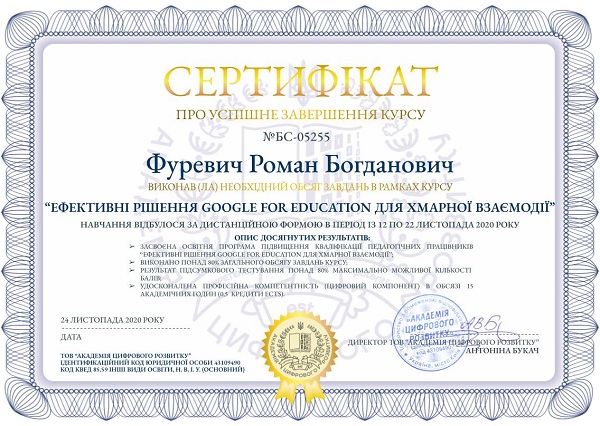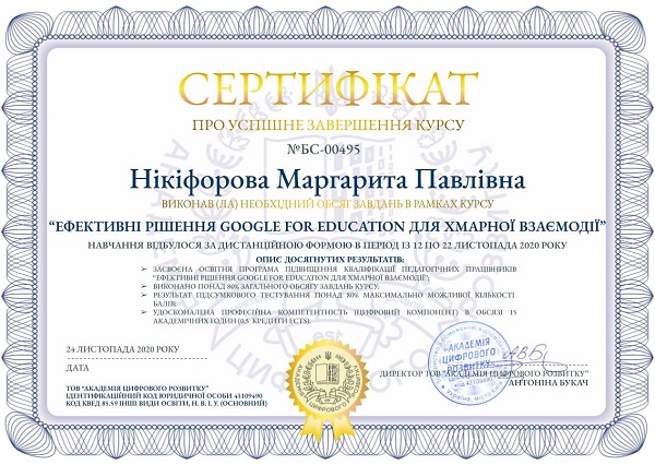 Вітаємо всіх учасників курсу «Ефективні рішення Google for Education для хмарної взаємодії» із успішним завершенням та отриманням сертифікатів про підвищення кваліфікації!