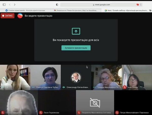 Розпочав вебінар заступник директора Інституту інноваційних освітніх технологій Віктор Гнатюк. Доповідачем була директорка Центру дистанційної освіти Анна Блідар; технічний супровід забезпечили провідні фахівці Центру: Марьян Гречух та Роман Фуревич.