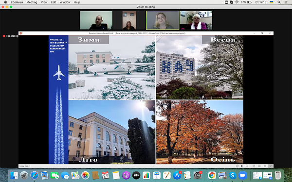 Технічне забезпечення здійснювала фахівець Лабораторії електронних засобів дистанційного навчання ІІОТ Нікіфорова М.П., колишня випускниця факультету ФККПІ НАУ.