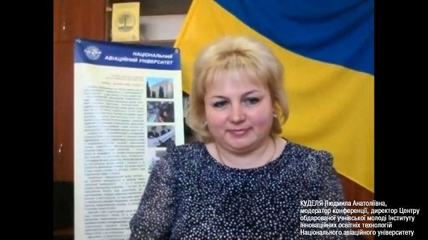 Освітні, наукові та профорієнтаційні проєкти Національного авіаційного університету презентувала Людмила Куделя, директор Центру обдарованої учнівської молоді ІІОТ НАУ.
