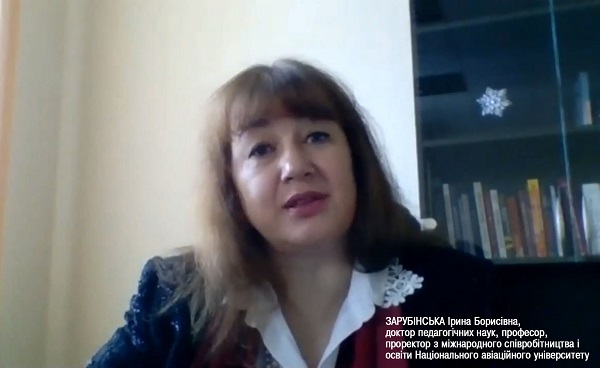 Із вітальним словом до освітян звернулась Ірина Зарубінська, доктор педагогічних наук, професор, проректор з міжнародного співробітництва і освіти Національного авіаційного університету, відзначивши важливість всебічного інтелектуального розвитку талановитої молоді та побажавши всім присутнім плідної роботи, конструктивного діалогу та нових здобутків.
