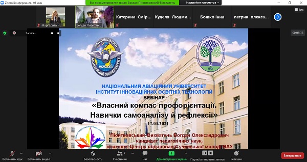 17.03.2021 відбувся вебінар для учнів старших класів та педагогічних працівників, батьків, психологів, та всіх бажаючих з циклу «Власний компас профорієнтації. Навички самоаналізу та рефлексії».
