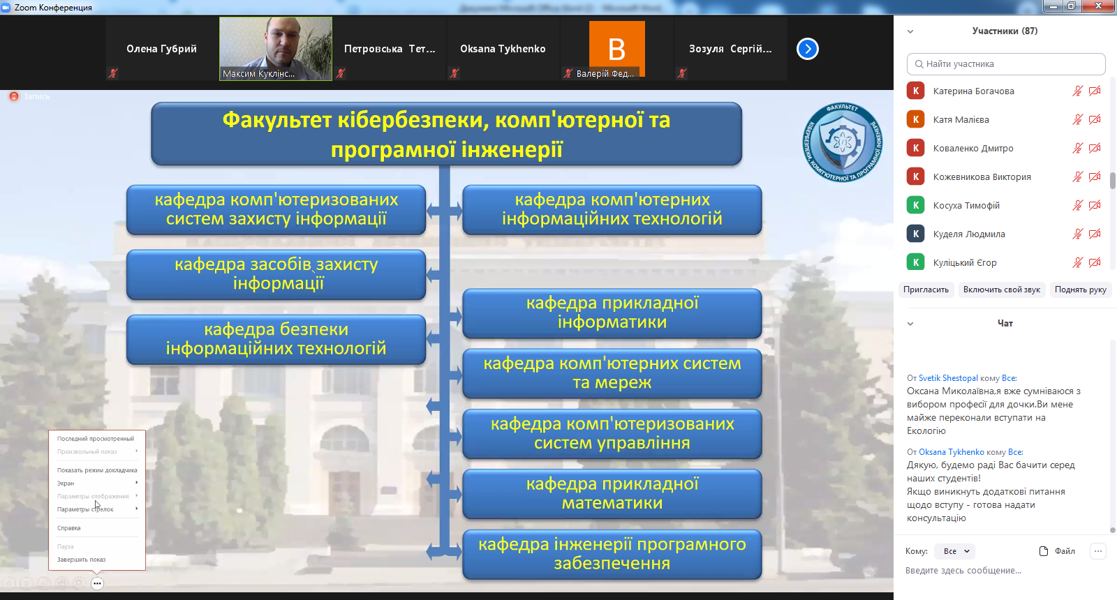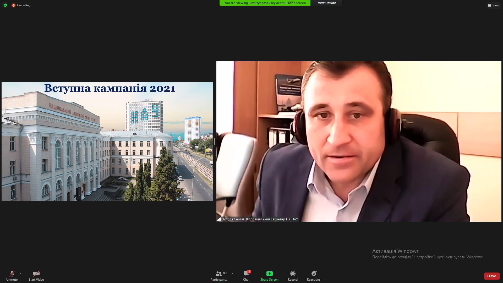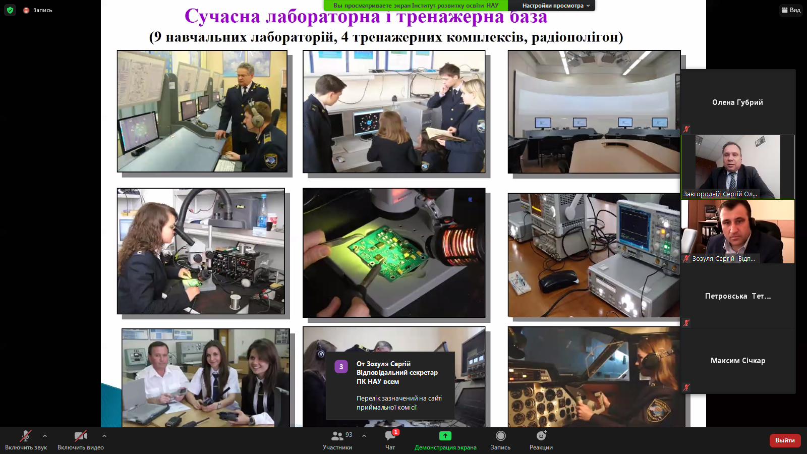 Інформацію для випускників – особливості навчання та умови прийому в 2021 році для здобуття вищої освіти розкрив Зозуля С.В., відповідальний секретар Приймальної комісії – керівник Консультативного центру НАУ, ст. викладач кафедри цивільної та промислової безпеки ФЕБІТ.