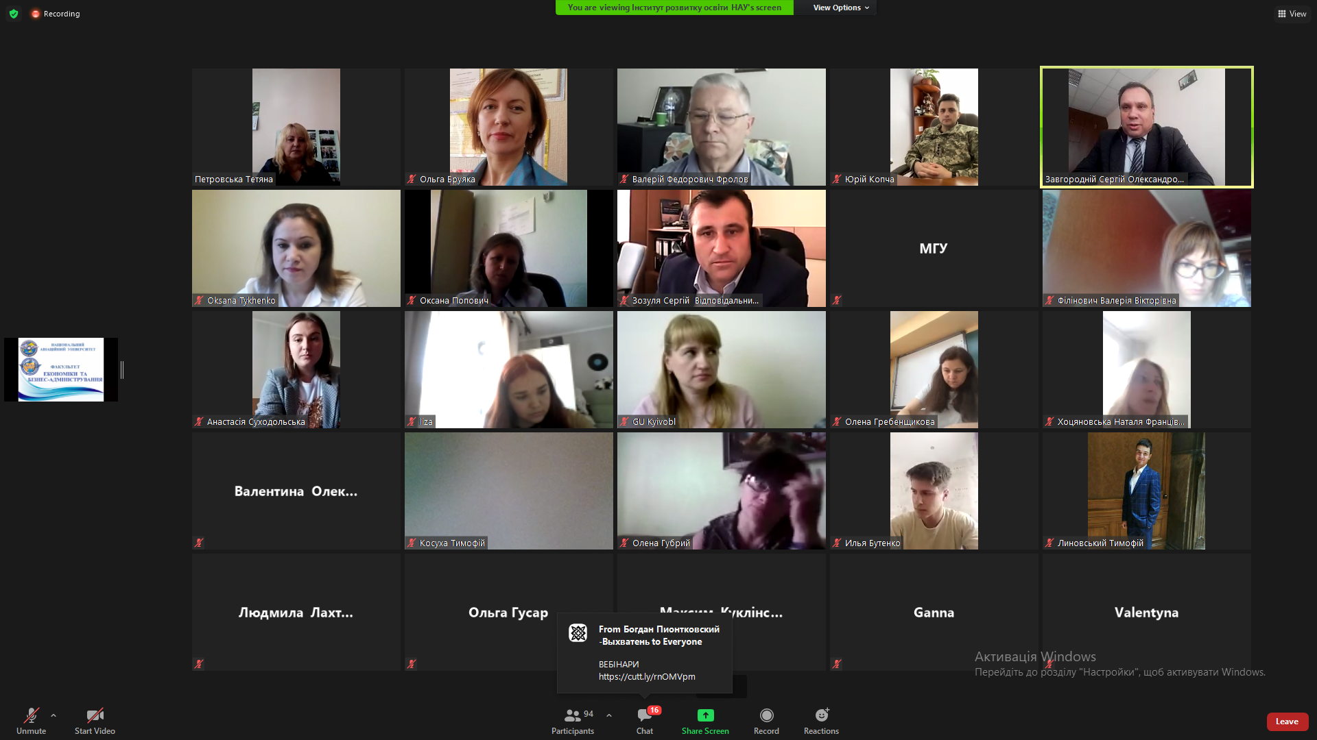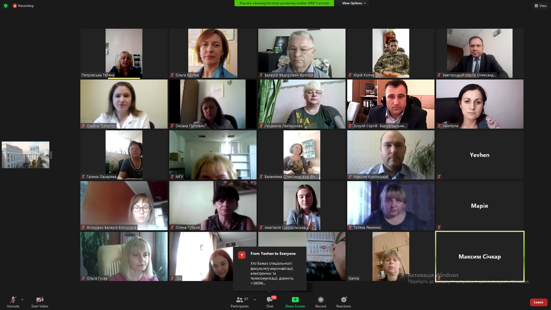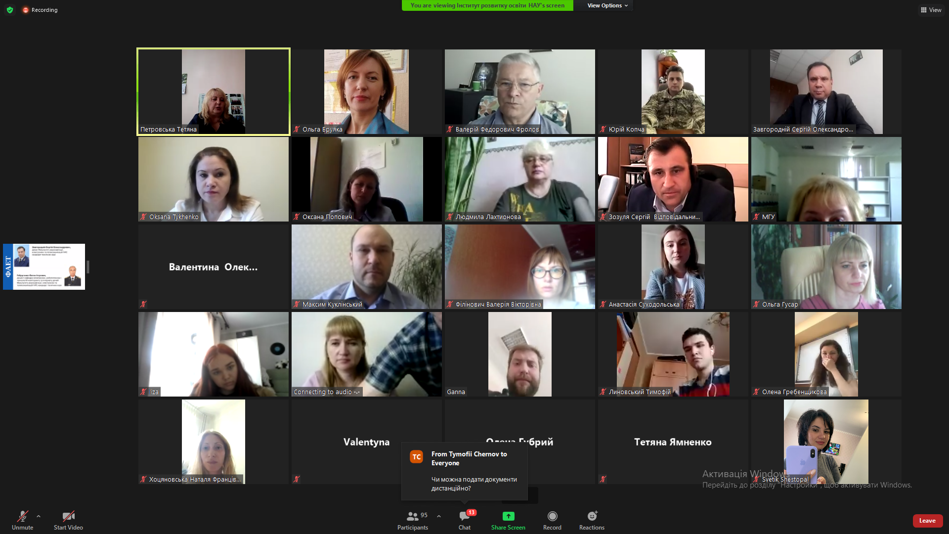 Технічне забезпечення здійснювала Горожанкіна А.А., завідувач Лабораторії електронних засобів дистанційного навчання ІІОТ НАУ.