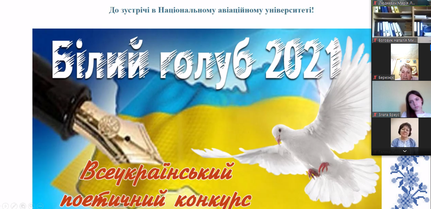 16 червня 2021 року в Інституті розвитку освіти НАУ відбувся захід-онлайн – літературно-мистецьке свято за результатами Всеукраїнського поетичного конкурсу «Білий голуб».