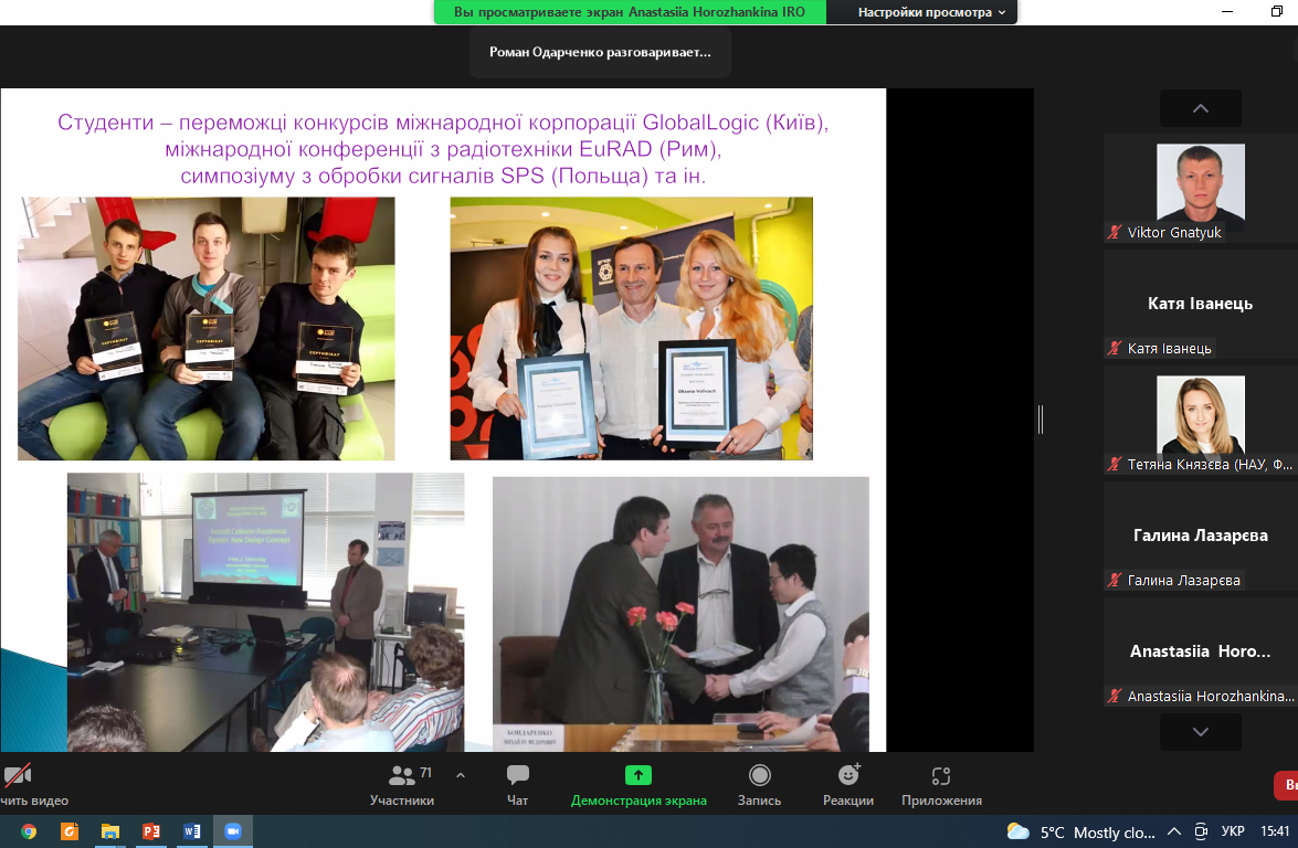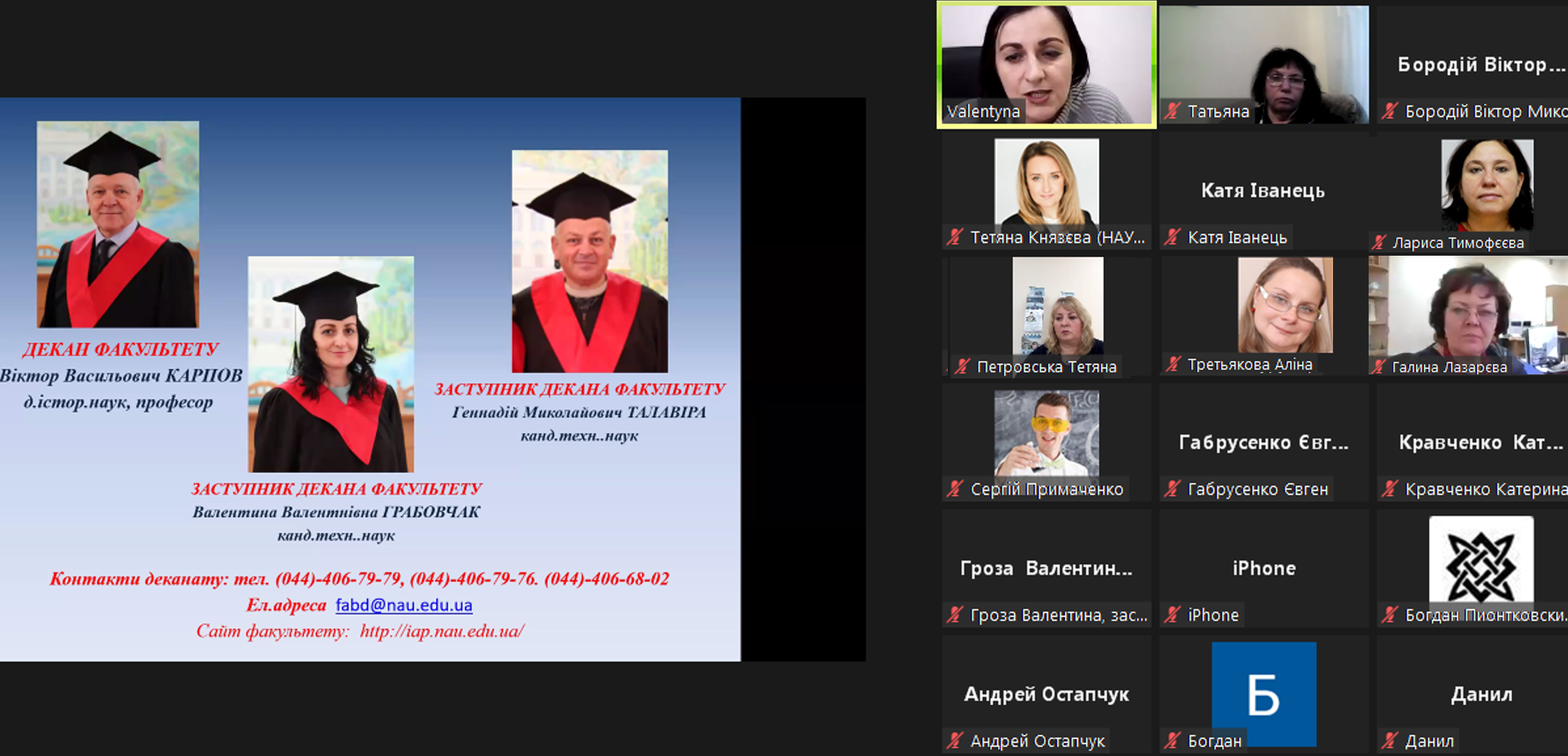 Модератор Дня відкритих дверей – Петровська Тетяна, к.пед.н., директор Центру допрофесійної підготовки та обдарованої учнівської молоді ННІРО НАУ. Технічне забезпечення заходу здійснювала Горожанкіна Анастасія, завідувач лабораторії електронних засобів дистанційного навчання ІІОТ НАУ.