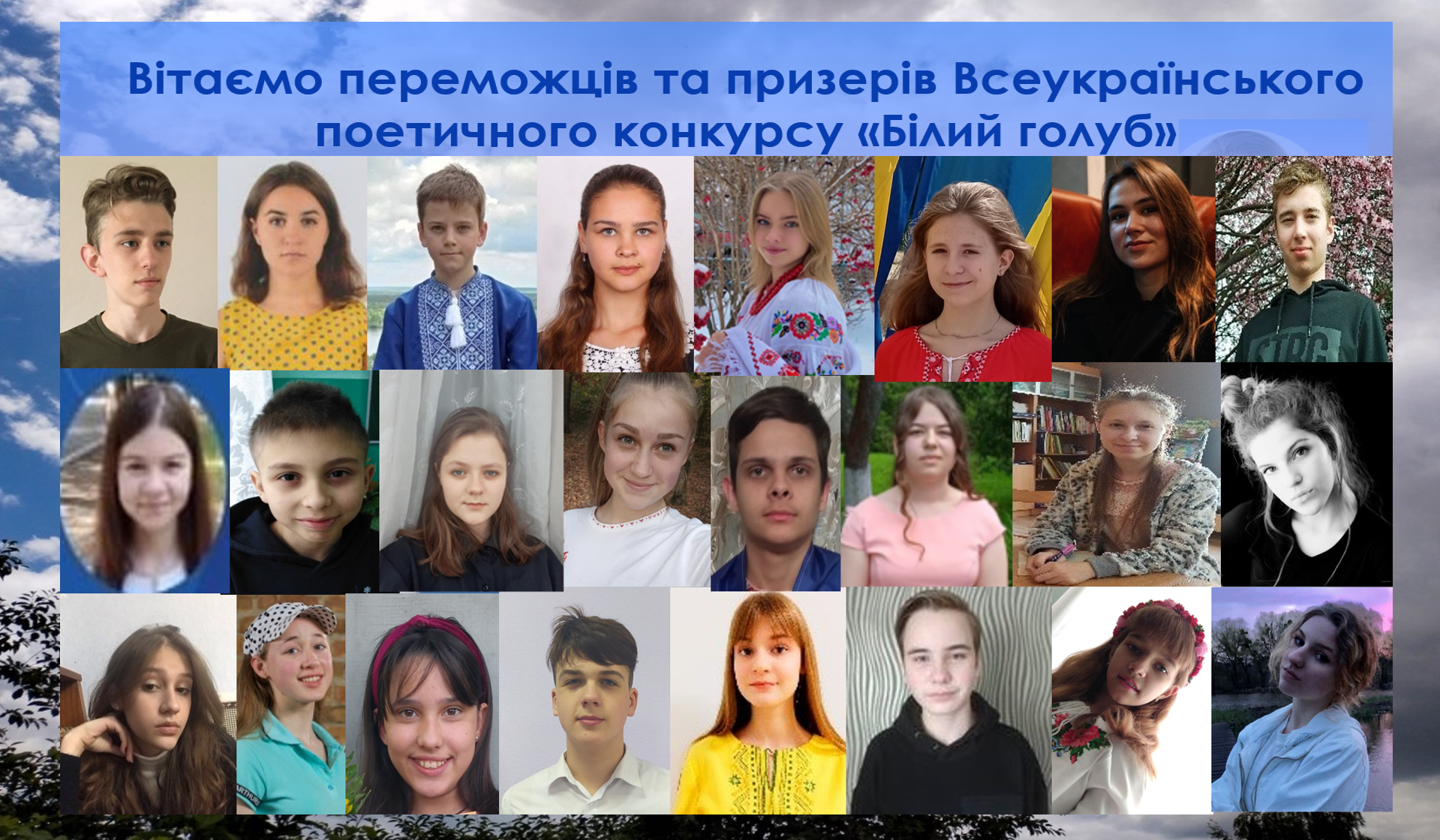 Конкурс відбувся у воєнний час і об’єднав учнів та студентів із різних областей України. Провідна тема поетичних творів – важка доля і героїзм Великого Українського Народу. Вірші переможців і призерів конкурсу увійшли в альманах поетичної творчості юних літераторів «Білий голуб».
