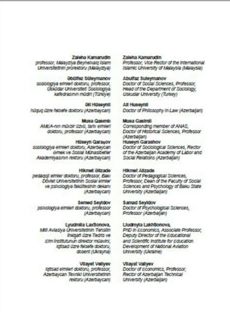 До складу редакційної ради видання входять науковці США, Франції, Малайзії, Туреччини, Китаю, Азербайджану, Узбекистану, Казахстану та ін. країн світу.