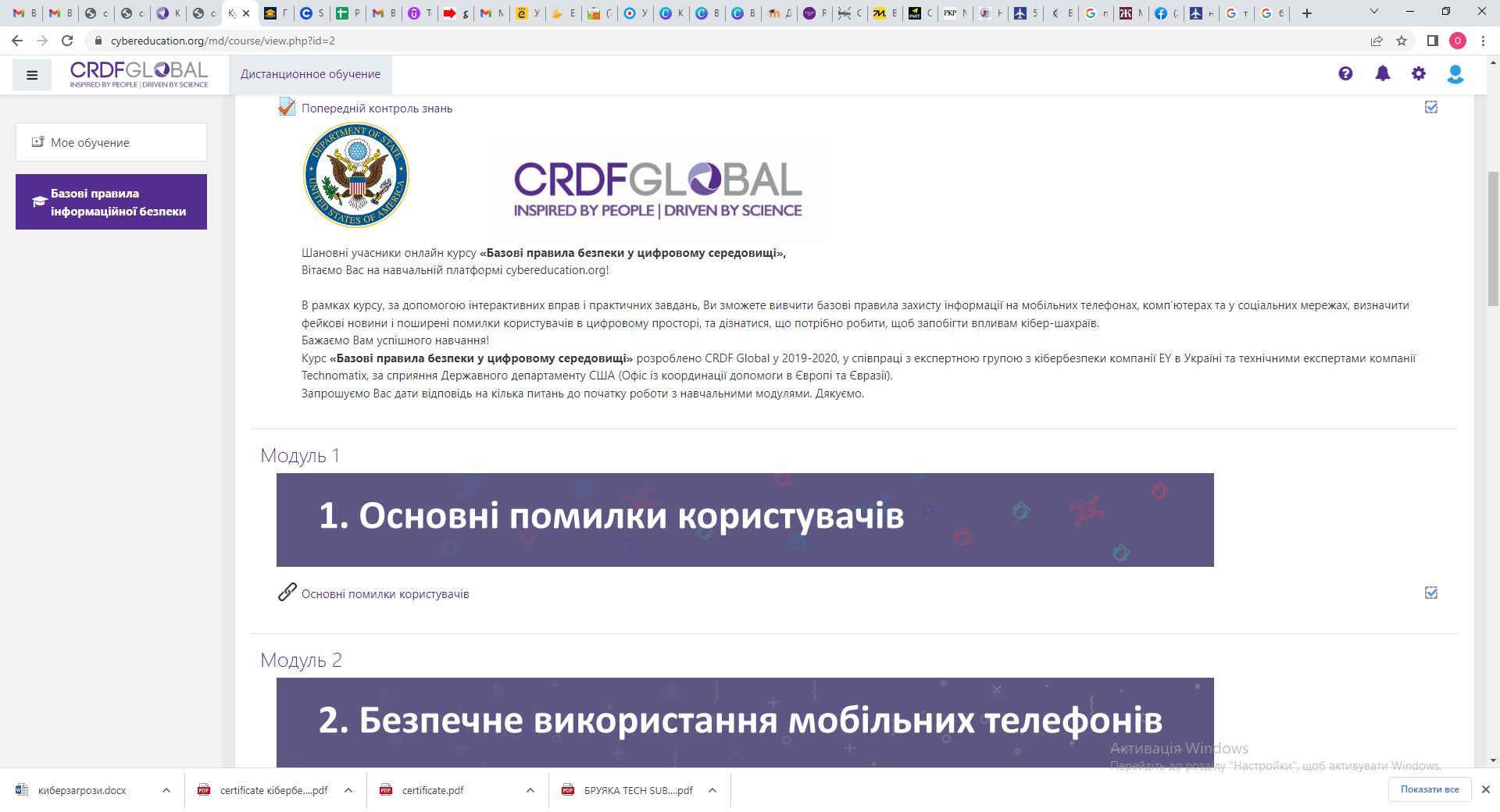 З метою підвищення рівня обізнаності щодо основних загроз в кіберпросторі та розвитку навичок із кібергігієни були проведені інтерактивні он-лайн курси «Базові правила безпеки у цифровому середовищі», доступ до яких надано в рамках співпраці Національного авіаційного університету з представництвом фонду цивільних досліджень та розвитку CRDF Global (США).