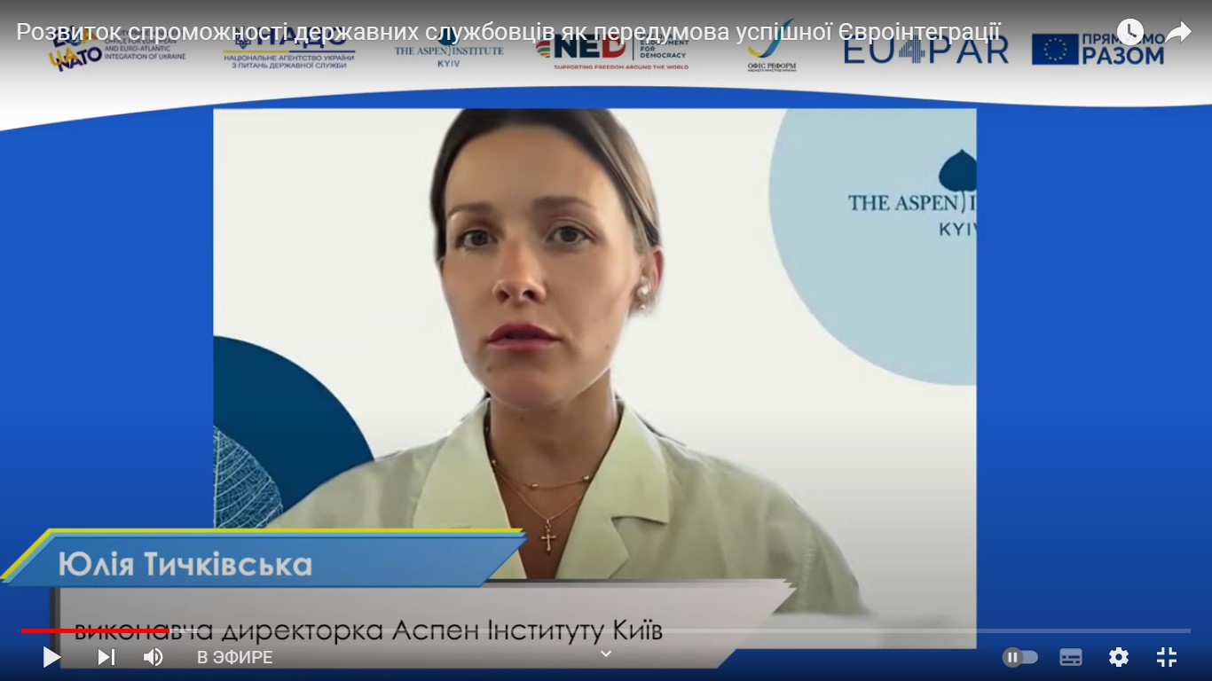 30 серпня 2022р. Аспен Інститут Київ спільно з Офісом Віцепремʼєр-міністра з питань європейської та євроатлантичної інтеграції України та Національним агентством України з питань державної служби провів онлайн діалог «Розвиток спроможності державних службовців як передумова успішної Євроінтеграції».