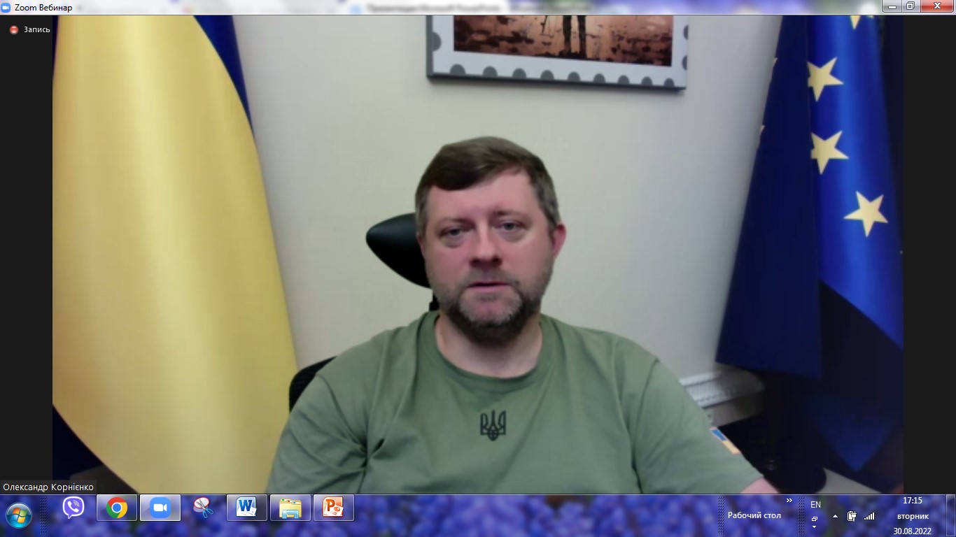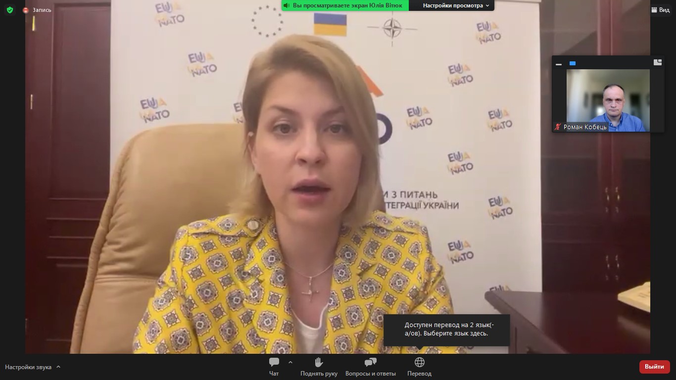 В он-лайн зустрічі взяли участь директор ННІРО НАУ, колишній державний службовець, Заслужений працівник освіти України Галина ЛАЗАРЄВА та заступник директора ННІРО НАУ, к.е.н., доцент Людмила ЛАХТІОНОВА.