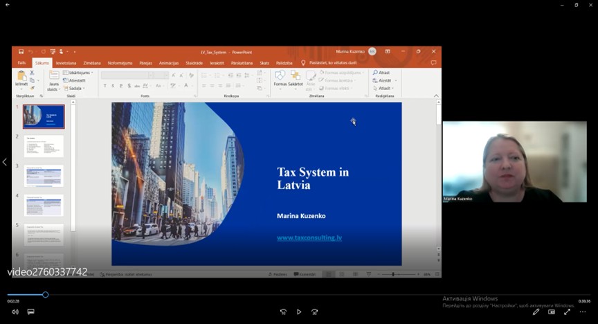 Другу лекцію на тему «Tax System of Latvia» («Податкова система Латвії») прочитала Марина КУЗЕНКО, сертифікований консультант Латвійської асоціації податкових консультантів, член правління SIA Tax Consulting, магістр економіки, Рига, Латвія.