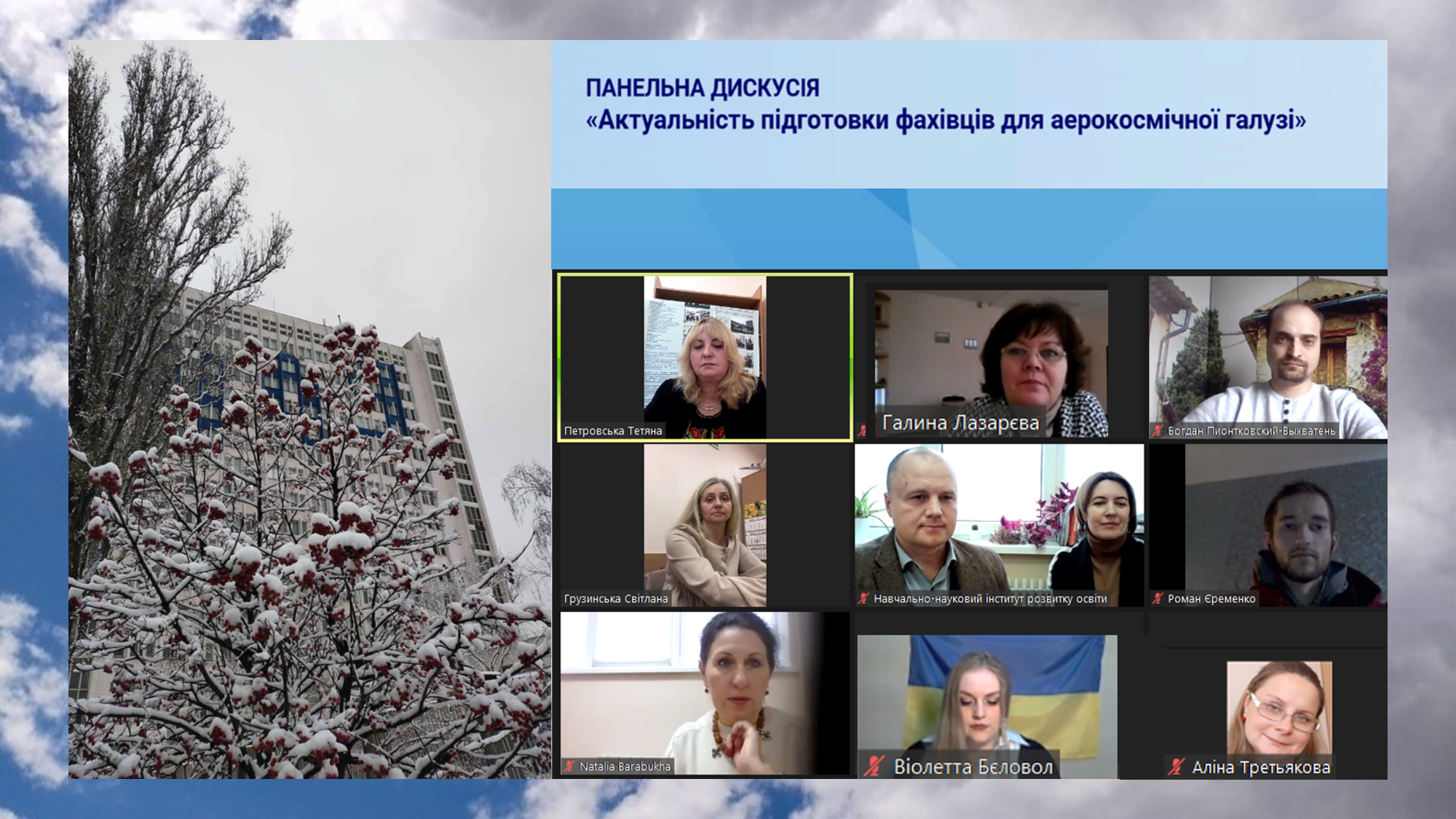 Під час панельної дискусії обговорювалися актуальні теми: «Підготовка фахівців з автоматизованих комп’ютерно-інтегрованих технологій та енергозбереження для аерокосмічної галузі»; «Підготовка кафедрою гідрогазових систем Аерокосмічного факультету Національного авіаційного університету авіаційних конструкторів на основі освітньо-професійної програми «Літаки і вертольоти»; «Роль підготовки фахового молодшого бакалавра для аерокосмічної галузі»; «Сучасні підходи до реалізації комплексної підготовки кадрів для аерокосмічної галузі».