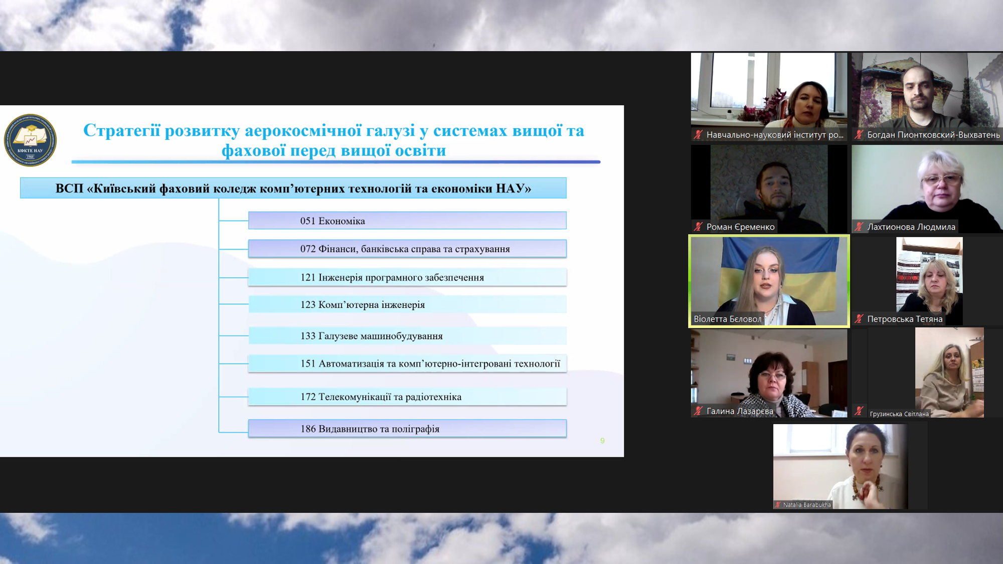 Організатори дистанційного заходу – Навчально-науковий інститут розвитку освіти НАУ спільно з Аерокосмічним факультетом, Відокремленим структурним підрозділом «Київський фаховий коледж комп’ютерних технологій та економіки Національного авіаційного університету».
