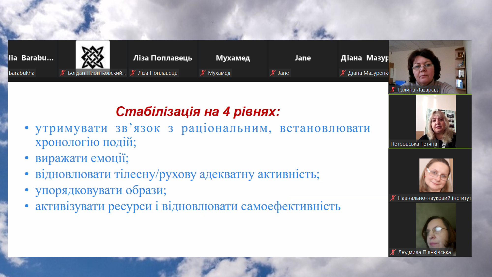Тема практичного заняття психологічної наукової школи: «Техніки самодопомоги в період війни» викликала надзвичайну зацікавленість слухачів. У непростих реаліях сьогодення для українців кожна людина в Україні потребує певних психологічних знань щодо самодопомоги та уміння нормалізувати власний психоемоційний стан.