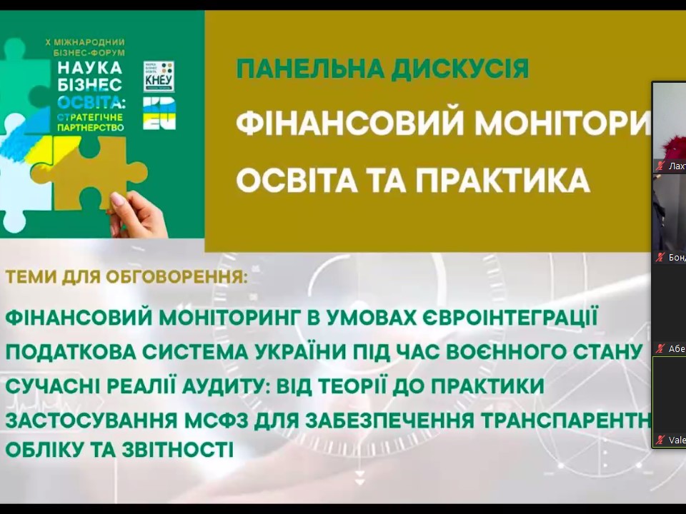 - Учасники панельної дискусії, присвяченої фінансовому моніторингу, обговорили зміни до законодавства України в сферах оподаткування та фінансового моніторингу на шляху до євроінтеграції та в контексті воєнного стану. Особливу увагу було приділено захисту фінансової системи, протидії легалізації доходів, отриманих злочинним шляхом, та фінансуванню тероризму. Спікери наголосили на актуальності підготовки фахівців з обліку та фінансового моніторингу відповідно до потреб економіки.