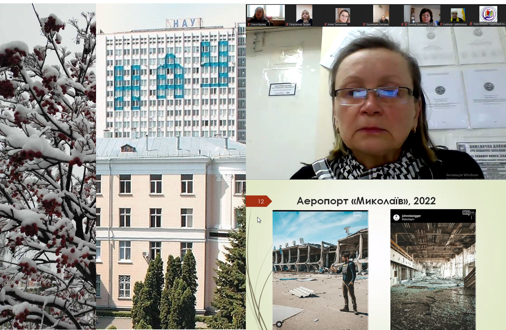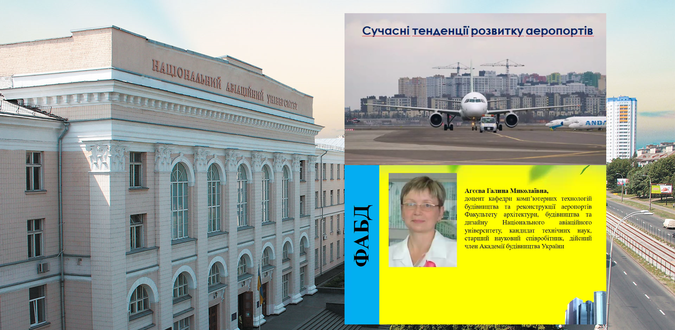 Лектор – Агєєва Галина Миколаївна, доцент кафедри комп’ютерних технологій будівництва та реконструкції аеропортів ФАБД НАУ, кандидат технічних наук, старший науковий співробітник, дійсний член Академії будівництва України зауважила, що нагальні проблеми відбудови та відновлення інфраструктури авіаційного транспорту потребують вивчення світових та вітчизняних практик, зокрема, повоєнних періодів, стосовно створення та удосконалення систем забезпечення надійності та безпеки об’єктів різного призначення; визначення експлуатаційної придатності складових аеродромних та аеропортових комплексів; організації навчального процесу та підготовки відповідних фахівців для авіаційної галузі закладами вищої освіти, зокрема Національним авіаційним університетом (НАУ), створеним у 1933 році.
