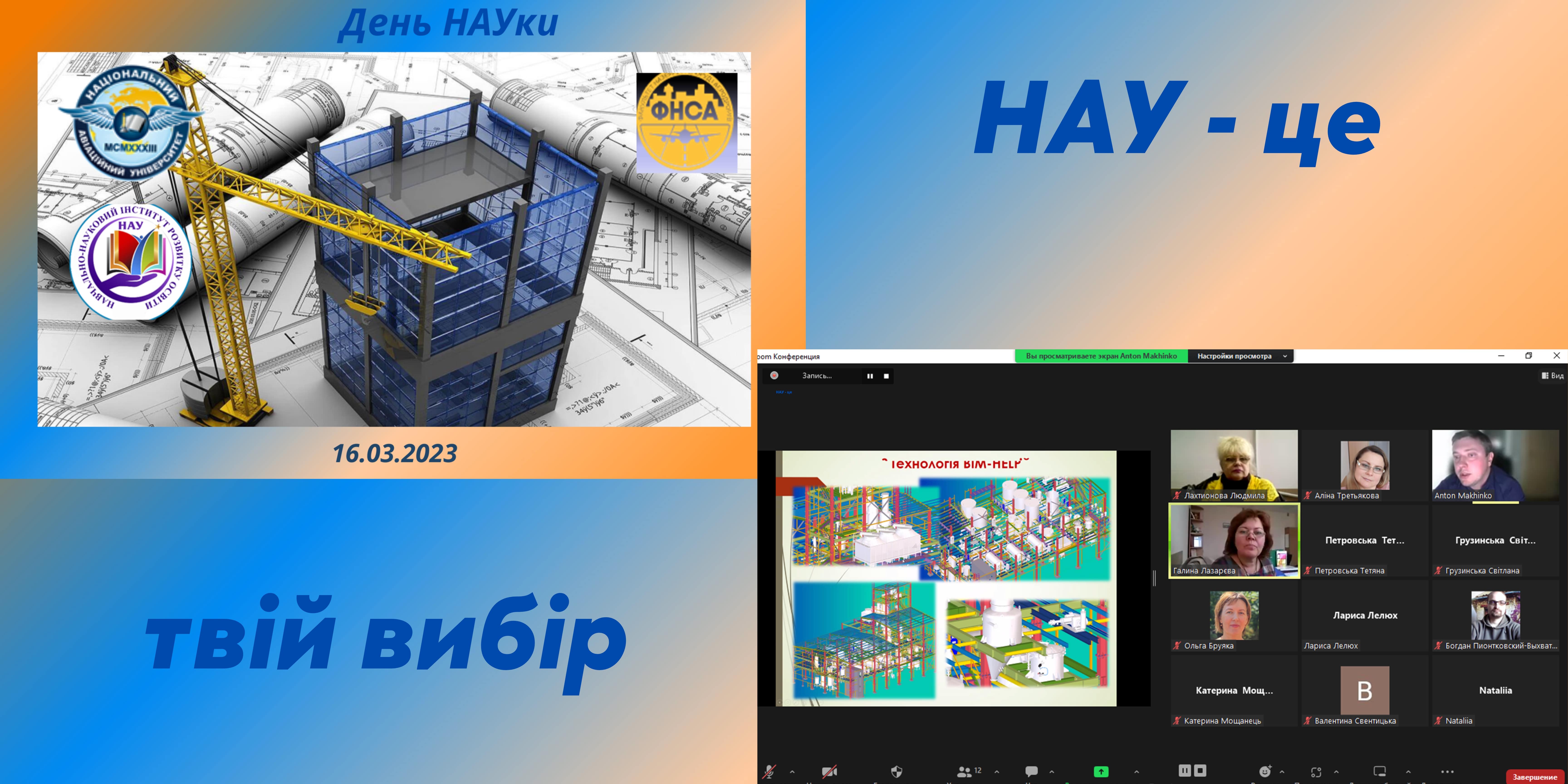 16.03.2023 року в Національному авіаційному університеті відбувся День НАУки для учнів 9-11 класів закладів загальної середньої освіти, студентів коледжів, вихованців закладів позашкільної освіти та учнів-членів Малої академії наук України. Зацікавлені мали можливість долучитися до засідання наукової школи архітектури, будівництва та дизайну
