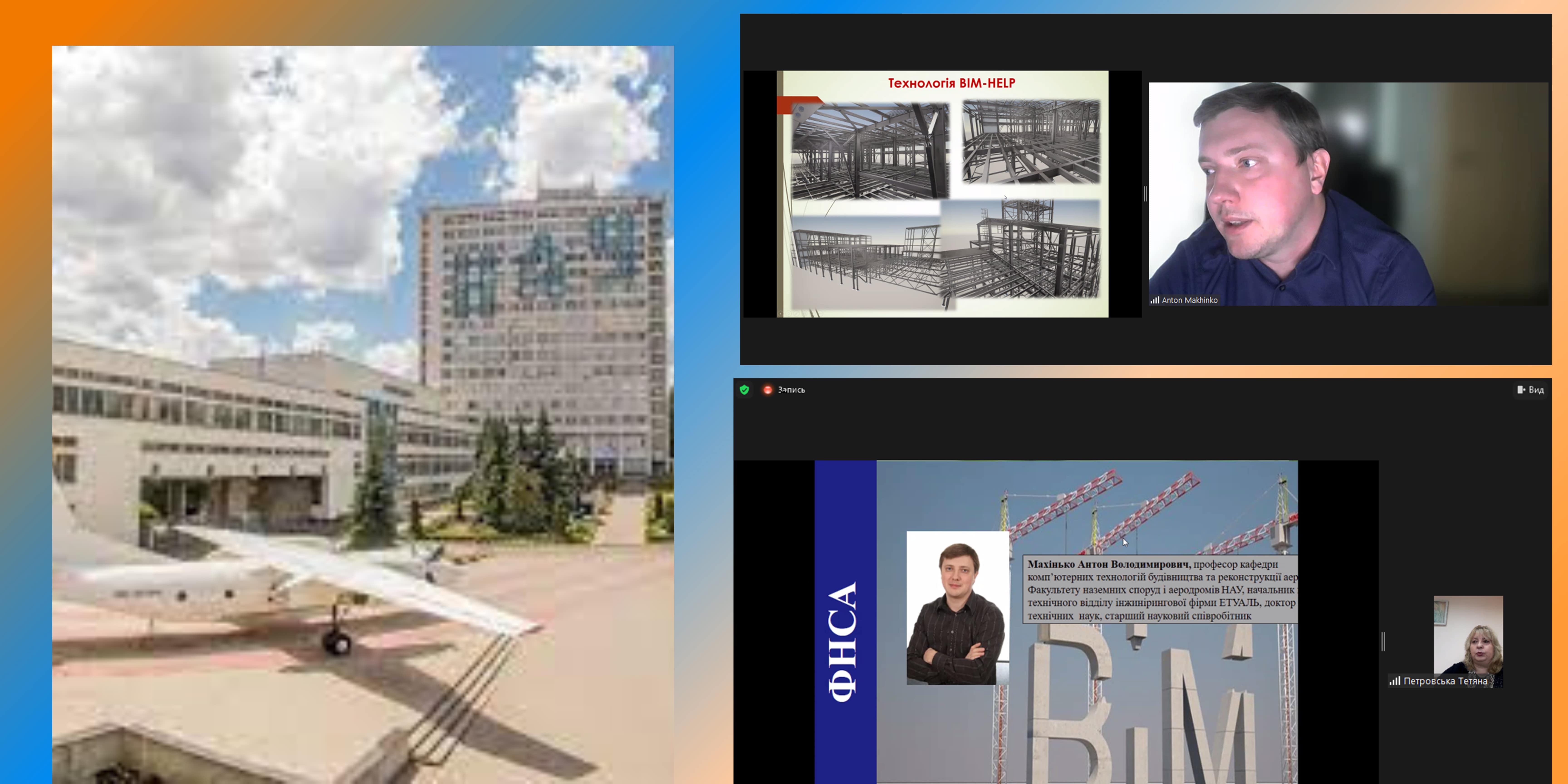 Доповідач – Махінько Антон Володимирович, професор кафедри комп’ютерних технологій будівництва та реконструкції аеропортів факультету наземних споруд і аеродромів НАУ; начальник науково-технічного відділу інжинірингової фірми ЕТУАЛЬ, доктор технічних наук, старший науковий співробітник.