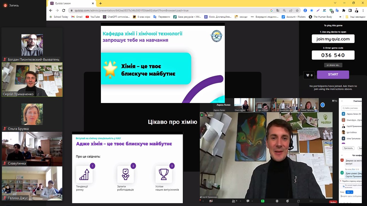 Для старшокласників, які брали участь у вебінарі, з метою підвищення пізнавального інтересу до вивчення хімічної дисципліни, було проведено інтерактивний конкурс.