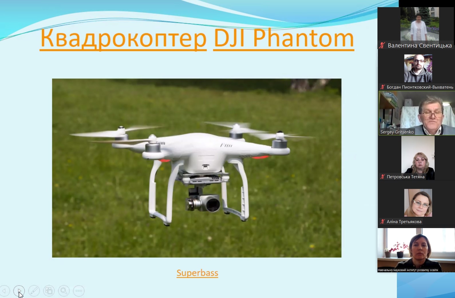 Спікер зустрічі – Гриценко Сергій, професор кафедри логістики Факультету транспорту, менеджменту і логістики НАУ, д.екон.н., професор наголосив, що найбільш значущими сьогодні є дані щодо класифікації, сфер застосування, розробок НАУ на сучасному ринку безпілотних повітряних суден як складової авіатранспортної галузі, а також цілі, завдання, етапи Плану відновлення сфери авіаційного транспорту України.