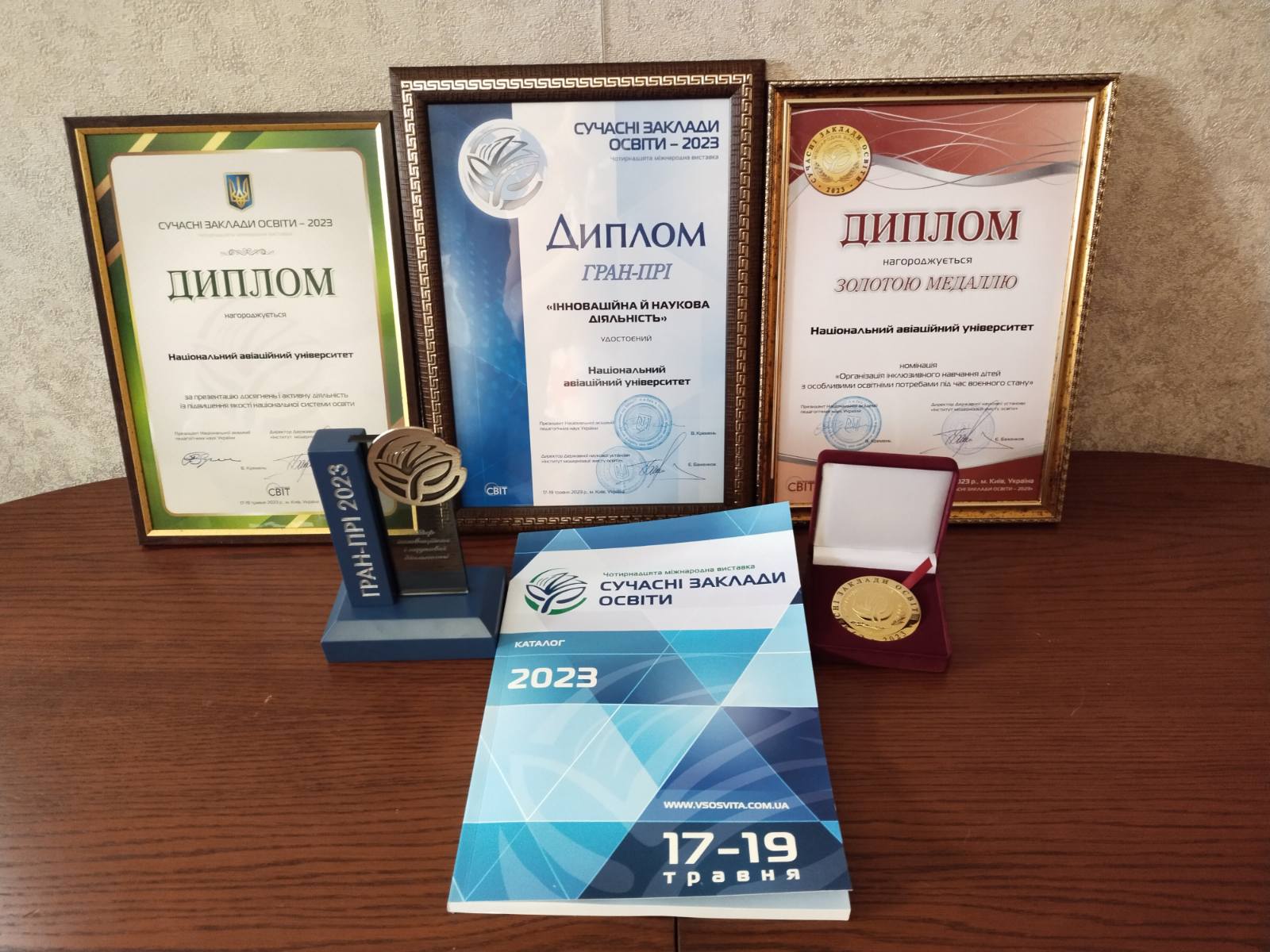 Національний авіаційний університет відзначено у рейтинговому виставковому конкурсі – Гран-Прі «Інноваційна й наукова діяльність»; нагороджено дипломом «За презентацію досягнень і активну діяльність із підвищення якості національної системи освіти»; нагороджено Золотою медаллю у номінації «Організація інклюзивного навчання дітей з особливими потребами під час воєнного стану».