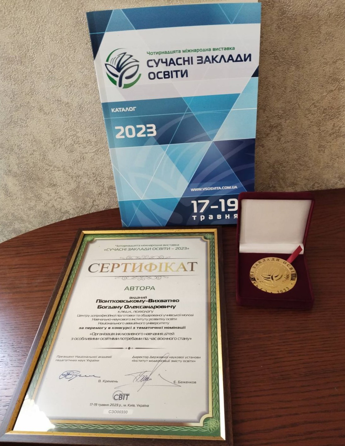 Почесною грамотою нагороджений – Луцький Максим, ректор Національного авіаційного університету, д.тех.н., професор «За плідну працю і вагомий особистий внесок у забезпечення високого рівня організації освітньої діяльності»; сертифікатом автора та Золотою медаллю – Піонтковський-Вихватень Богдан, к.пед.н., психолог Центру допрофесійної підготовки та обдарованої учнівської молоді Навчально-наукового інституту розвитку освіти НАУ за перемогу в конкурсі з тематичної номінації «Організація інклюзивного навчання дітей з особливими освітніми потребами під час воєнного стану». А також нагороджені сертифікатами доповідачів за участь в Міжнародній конференції «Дистанційна освіта: інноваційні, нормативно-правові, педагогічні аспекти» доповідачі – Гнатюк Віктор, к.т.н., доцент, доцент кафедри телекомунікаційних та радіоелектронних систем, заступник відповідального секретаря приймальної комісії НАУ; Аndris Дenins, д.екон.н., професор, Латвійський університет, м.Рига, Латвія; Кasim Тatlilioğlu, доцент, к.псих.н., завідувач кафедри психології, факультет мистецтв і природничих наук, Бінгьольський університет, м. Бінгьол, Туреччина; Mohammad Jammal, к.н. з менеджменту освіти та політики лідерства, Приймальна комісія, Британський університет в Дубаї, м.Дубай, Об'єднані Арабські Емірати; Lia Eliava, к.н. з ділового адміністрування, факультет бізнесу та технологій, Грузинський національний університет SEU, м. Тбілісі, Грузія; Svitlana Suchkovа, к.ф.-м.н., доцент кафедри, Інтегрована старша середня школа та Європейська державна школа в Берліні, м. Берлін, Федеративна Республіка Німеччина; Сичікова Яна, д.т.н., професор, проректор з наукової роботи Бердянського державного педагогічного університету; Верголяс Майя, д.біол.н., професор, завідувач лабораторії психофізіологіі праці, гігієни і фізіології змінної праці, ДУ «Інститут медицини праці ім. Ю.І.Кундієва» НАМН України; Супрун Дар’я, д.пед.н., професор, кафедра спеціальної психології та медицини факультету спеціальної та інклюзивної освіти, Український державний університет ім. М.Драгоманова.