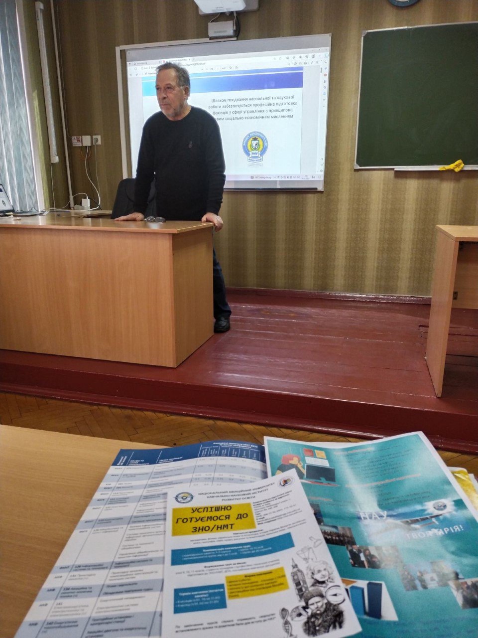 09 листопада 2023 року в Спеціалізованій школі № 187 з поглибленим вивченням української та англійської мов м. Києва відбулася профорієнтаційна зустріч представників Національного авіаційного університету – Навчально-наукового інституту розвитку освіти, Факультету транспорту, менеджменту і логістики, Факультету економіки та бізнес-адміністрування з учнями 11-х класів.