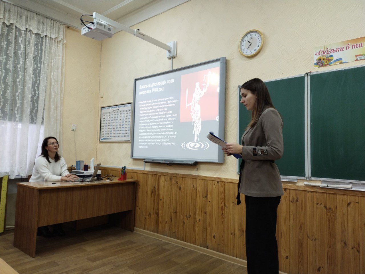 В рамках відзначення Всеукраїнського тижня права представники Юридичного факультету представили доповідь на тему «Права і свободи людини і громадянина – основна функція громадянського суспільства», зокрема розкрили питання прав людини, закріплених в Загальній декларації прав людини 1948 року, а також окреслити основні права та свободи людини і громадянина в Україні, можливість їх обмеження в умовах воєнного стану.