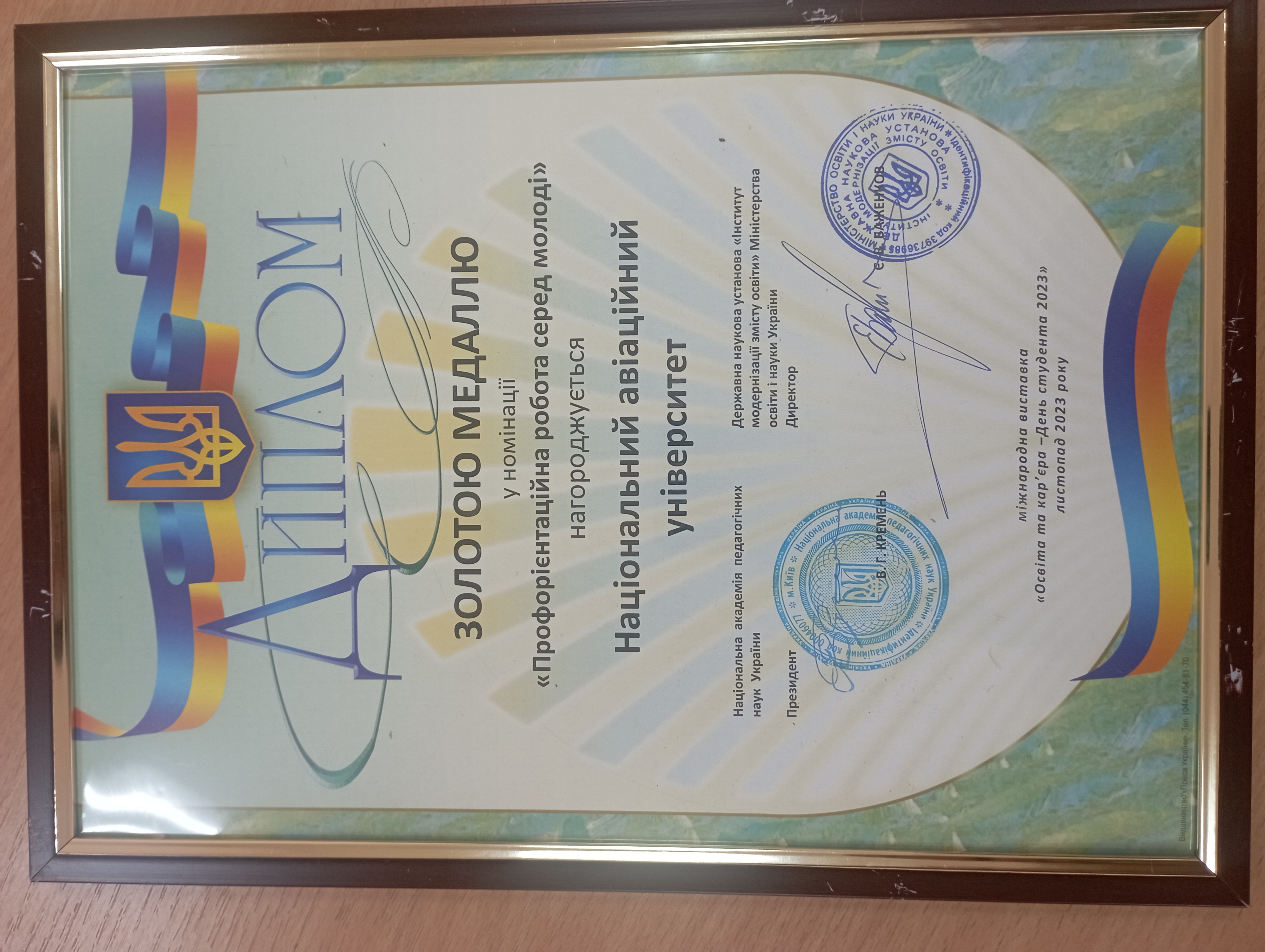 У рейтинговому конкурсі виставки НАУ нагороджено Почесним званням «Лідер вищої освіти України» та Золотою медаллю в номінації «Профорієнтаційна робота серед молоді».