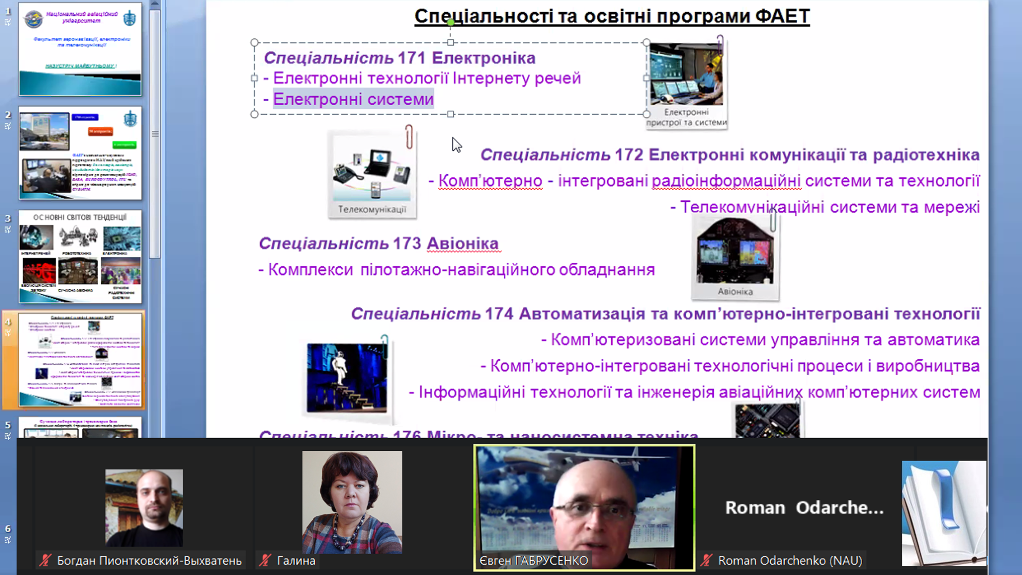 Учасники заходу познайомились із діяльністю Факультету аеронавігації, електроніки та телекомунікації НАУ, дізнались, що факультет – це шість випускових кафедр, три конструкторських бюро, дев’ятнадцять лабораторій, серед яких дві – мають статус національної спадщини України. Всі спеціальності, за якими на ФАЕТ здійснюється підготовка бакалаврів та магістрів, – в пріоритеті Держави: аеронавігаційні системи (що дозволяють визначати координати та траєкторію руху), управління повітряним рухом (авіадиспетчери), авіоніка (авіаційні цифрові пілотажно-навігаційні комплекси), системи управління (літакові та наземні), комп’ютерно-інтегровані комплекси (авіаційного, військового та цивільного призанчення), електроніка, мікро- та наносистемна техніка, телекомунікаційні системи та мережі, радіоелектронні комплекси, і головне – захист інформації та даних в усіх зазначених системах і комплексах.