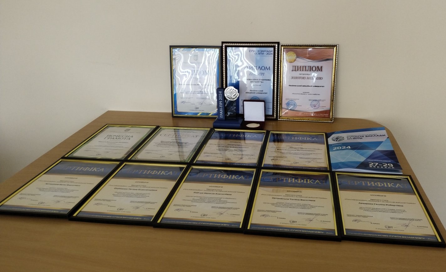 У рейтинговому конкурсі виставки НАУ нагороджено дипломом ГРАН-ПРІ «Інноваційна й наукова діяльність»; дипломом за презентацію досягнень, активну участь і значний внесок у розвиток сфери освіти й науки України»; Золотою медаллю в номінації «Екологічна свідомість – шлях у майбутнє».