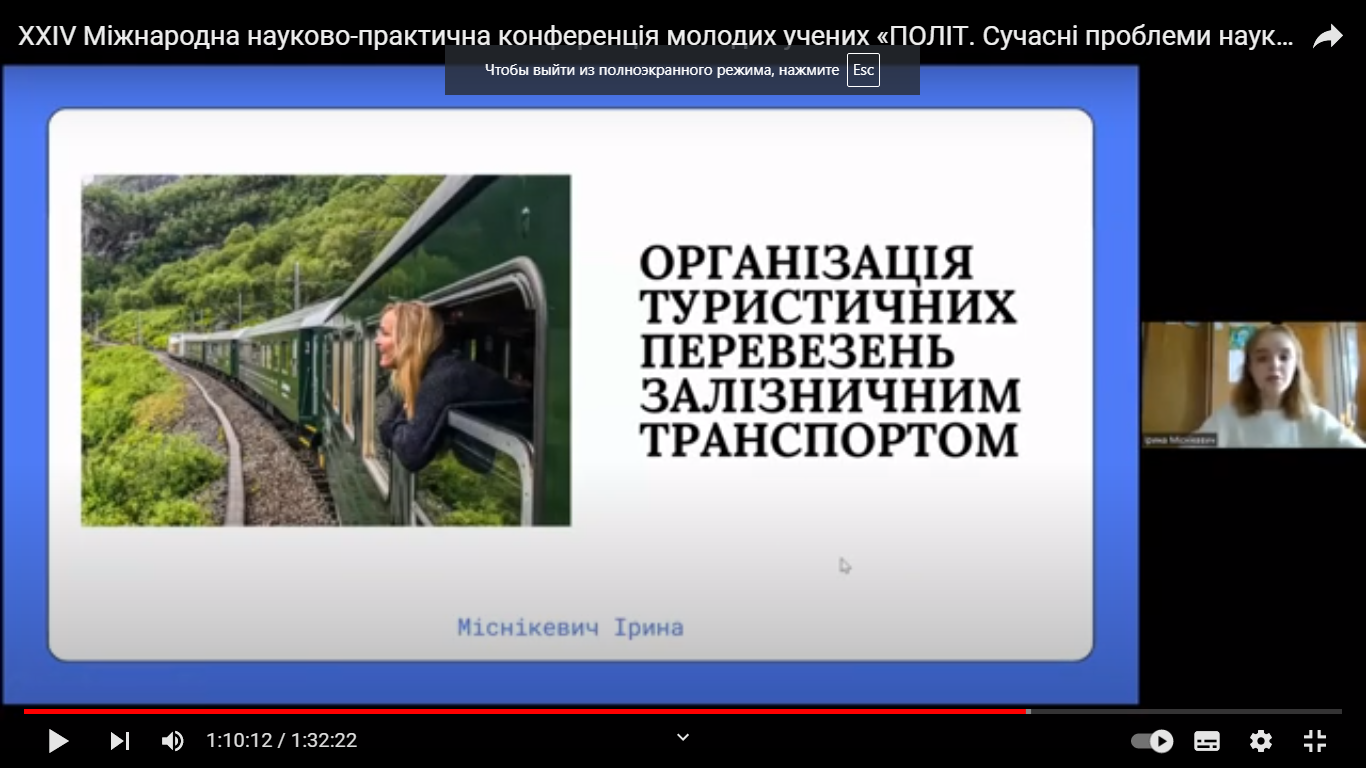 - МІСНІКЕВИЧ ІРИНИ на тему «ОРГАНІЗАЦІЯ ТУРИСТИЧНИХ ПЕРЕВЕЗЕНЬ ЗАЛІЗНИЧНИМ ТРАНСПОРТОМ»;