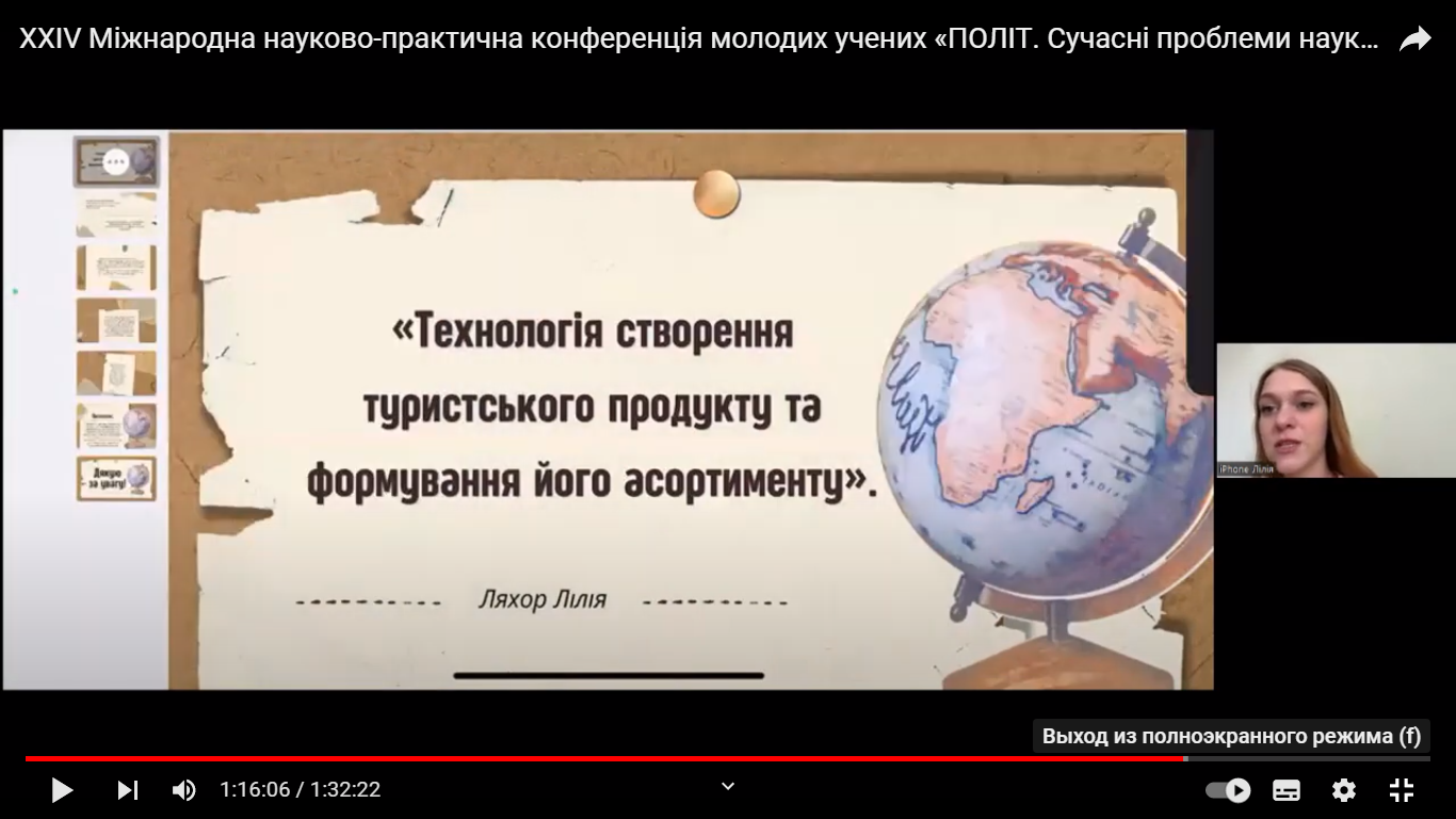 - ЛЯХОР ЛІЛІЇ на тему «ТЕХНОЛОГІЯ СТВОРЕННЯ ТУРИСТСЬКОГО ПРОДУКТУ ТА ФОРМУВАННЯ ЙОГО АСОРТИМЕНТУ»;