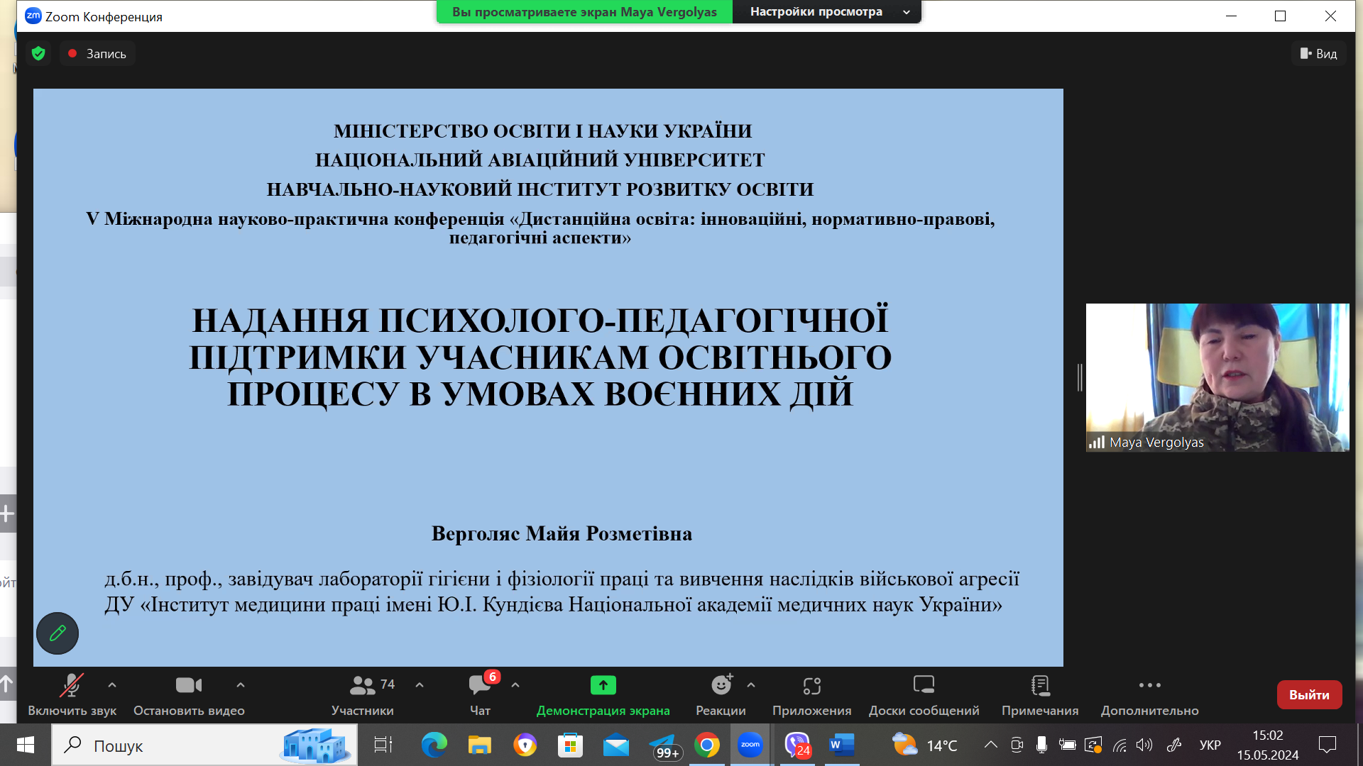 Великого практичного значення набула доповідь «НАДАННЯ ПСИХОЛОГО-ПЕДАГОГІЧНОЇ ПІДТРИМКИ УЧАСНИКАМ ОСВІТНЬОГО ПРОЦЕСУ В УМОВАХ ВОЄННИХ ДІЙ» ВЕРГОЛЯС М.Р., д. біол. наук, професора, завідувача лабораторії гігієни і фізіології праці та вивчення наслідків військової агресії, ДУ «Інститут медицини праці ім. Ю.І. Кундієва Національної академії медичних наук України» (м. Київ, Україна).