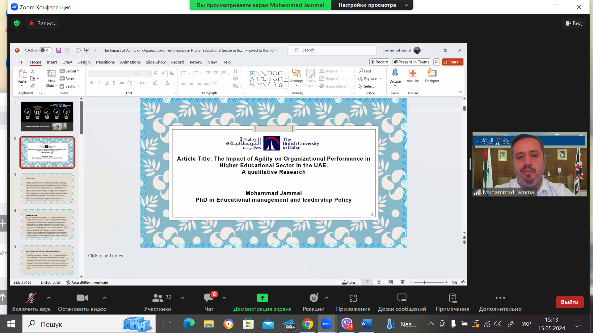 Ефективність гнучкості в управлінні при переході на дистанційне навчання у секторі вищої освіти в ОАЕ («THE IMPACT OF AGILITY ON ORGANIZATIONAL PERFORMANCE IN HIGHER EDUCATIONAL SECTOR IN THE UAE») розкрив у своїй презентації МУХАМЕД ДЖАММАЛ, кандидат наук в галузі менеджменту освіти та політики лідерства, член Приймальної комісії, Британський університет у Дубаї (м. Дубай, Об’єднані Арабські Емірати).
