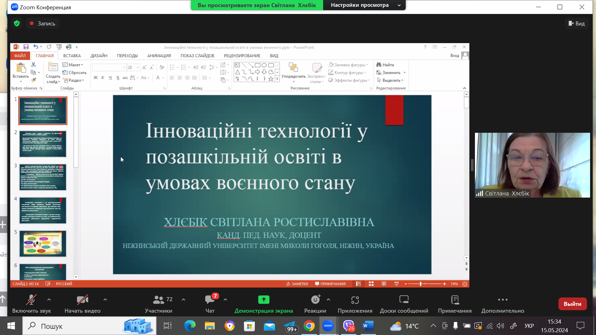 Особливу увагу привернула презентація «ІННОВАЦІЙНІ ТЕХНОЛОГІЇ В ПОЗАШКІЛЬНІЙ ОСВІТІ В УМОВАХ ВОЄННОГО СТАНУ» ХЛЄБІК С.Р., канд. пед. наук, доцента, кафедра соціальної педагогіки і соціальної роботи, Ніжинський державний університет імені Миколи Гоголя (м. Ніжин, Україна).