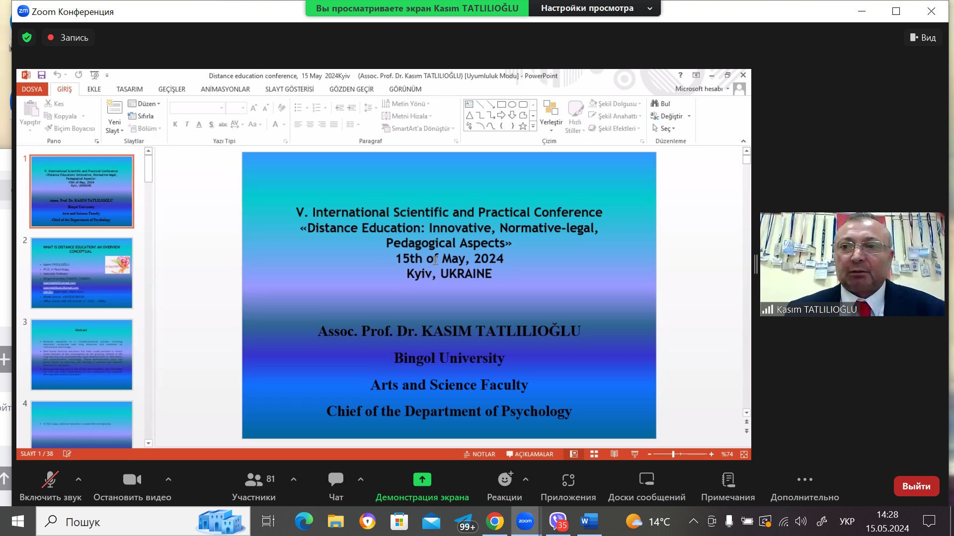 Огляд різних концептуальних основ дистанційної освіти («WHAT IS DISTANCE EDUCATION? AN OVERVIEW CONCEPTUAL») висвітлив КАСИМ ТАТЛІЛІОГЛИ, доцент, доктор наук, завідувач кафедри психології, факультет мистецтв і науки Університету Бінгьоль (м. Бінгьоль, Туреччина).