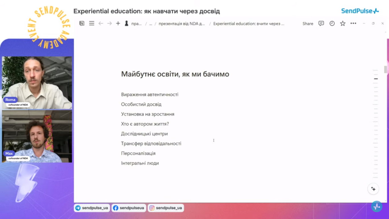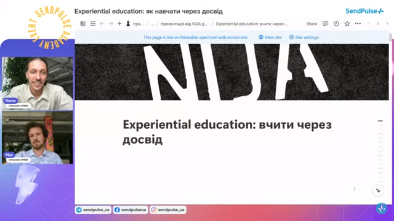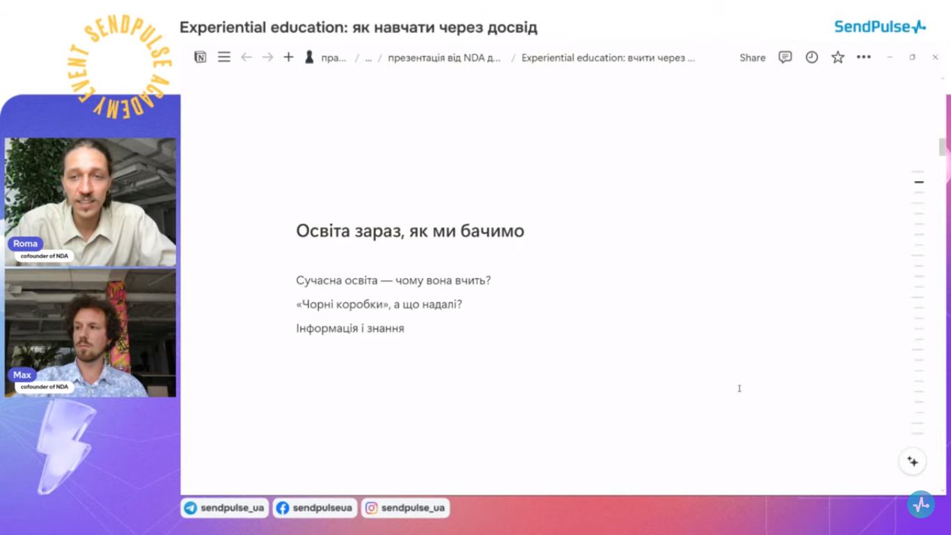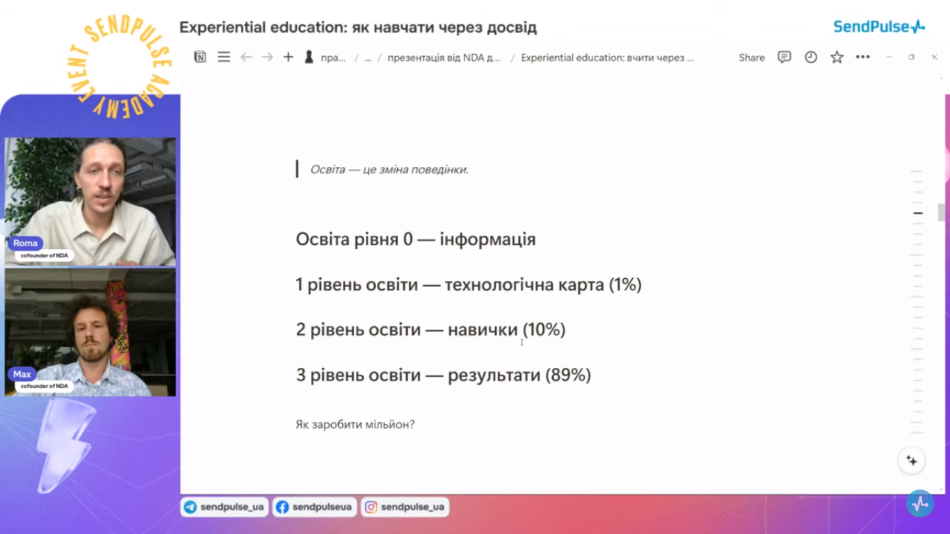 20.06.2024 р. компанія «Sendpulse» провела вебінар «Experiential education: як навчати через досвід».