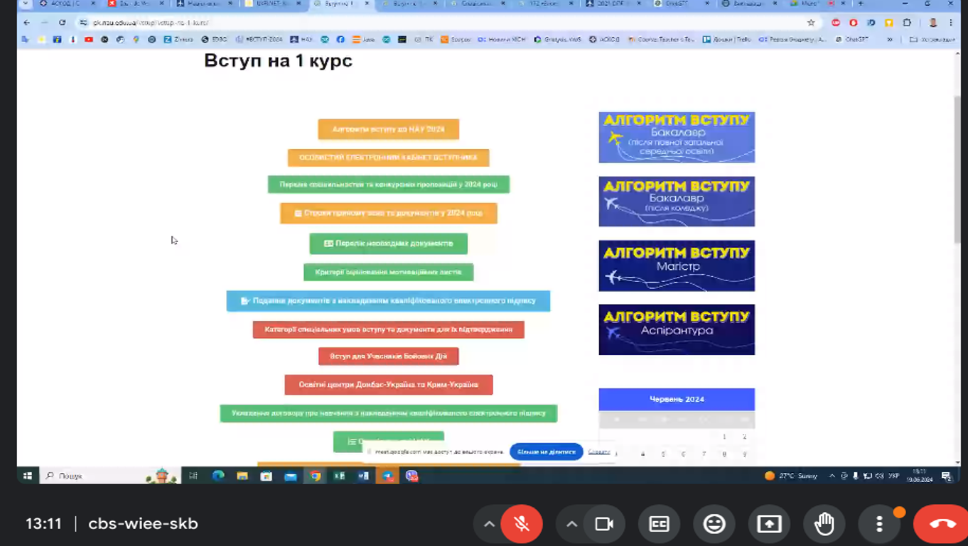 19 червня 2024 року відбулась зустріч в онлайн-форматі з майбутніми абітурієнтами – випускниками закладів загальної середньої освіти, слухачами Підготовчого відділення громадян України та їхніми батьками, яка була організована Навчально-науковим інститутом розвитку освіти НАУ.