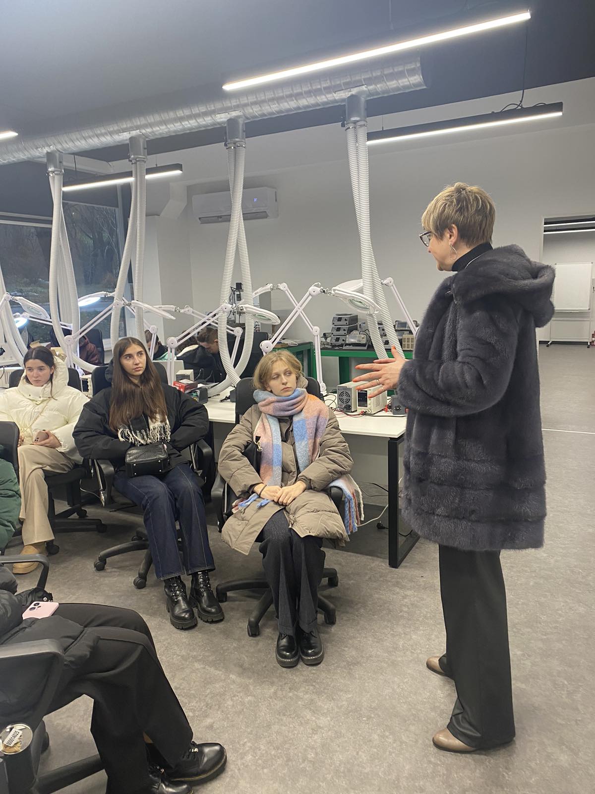Заняття провели: Тачиніна Олена, д.т.н., професор, завідувачка кафедри авіоніки та систем управління у навчально-науковій лабораторії електроніки ФАЕТ,; Тетяна Соломаха, старший викладач кафедри авіоніки та систем управління.