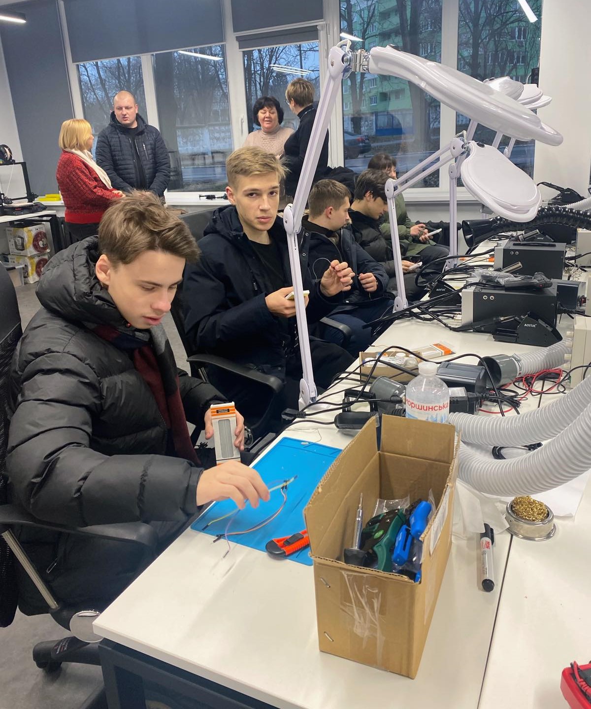 Захоплюючий захід відбувся в навчально-науковій лабораторії електроніки, запущеною компанією Ajax Systems. На сучасному обладнанні одинадцятикласники технологічного профілю під керівництвом науковців відпрацювали практичну частину.