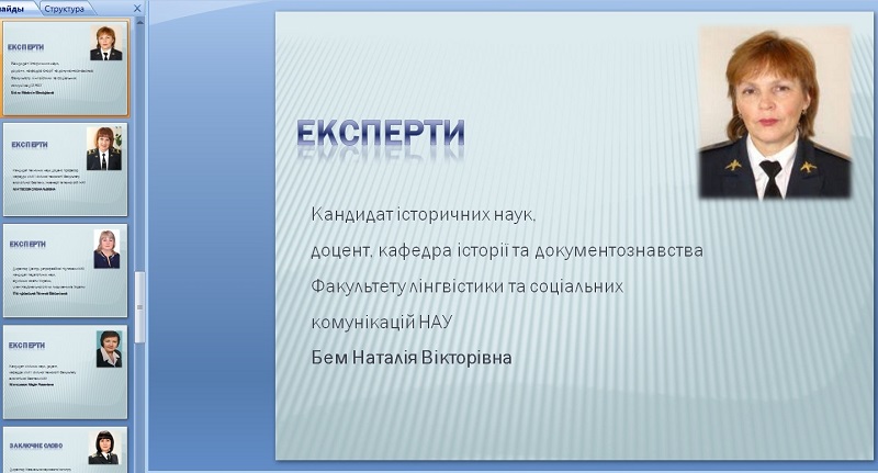 Зі словами подяки керівництву університету, інституту, науковцям виступила кандидат історичних наук, методист з науково-дослідницької роботи Комунального закладу «Центр інноваційних освітні» Фастівської міської ради Київської області Галина Бондаренко.