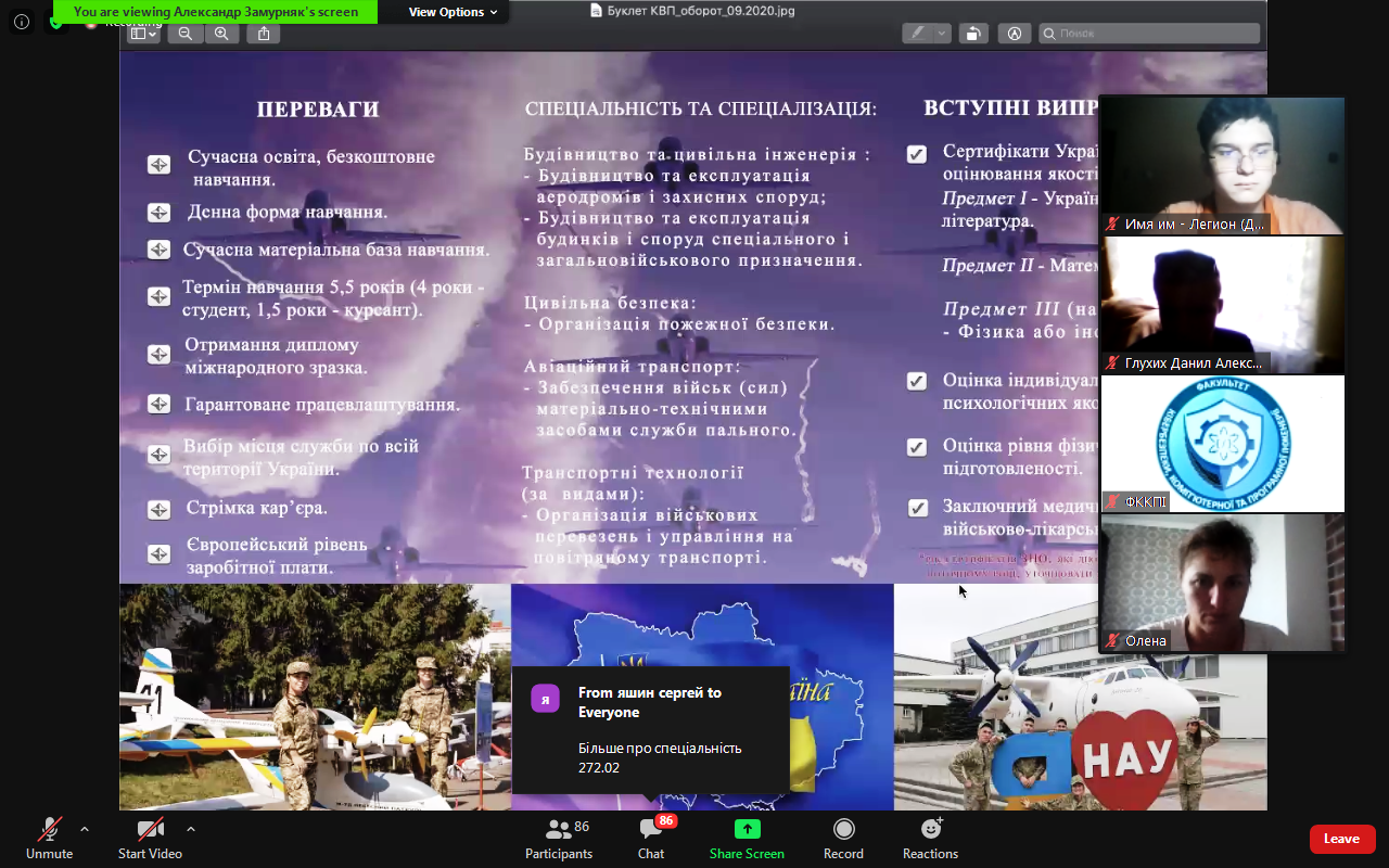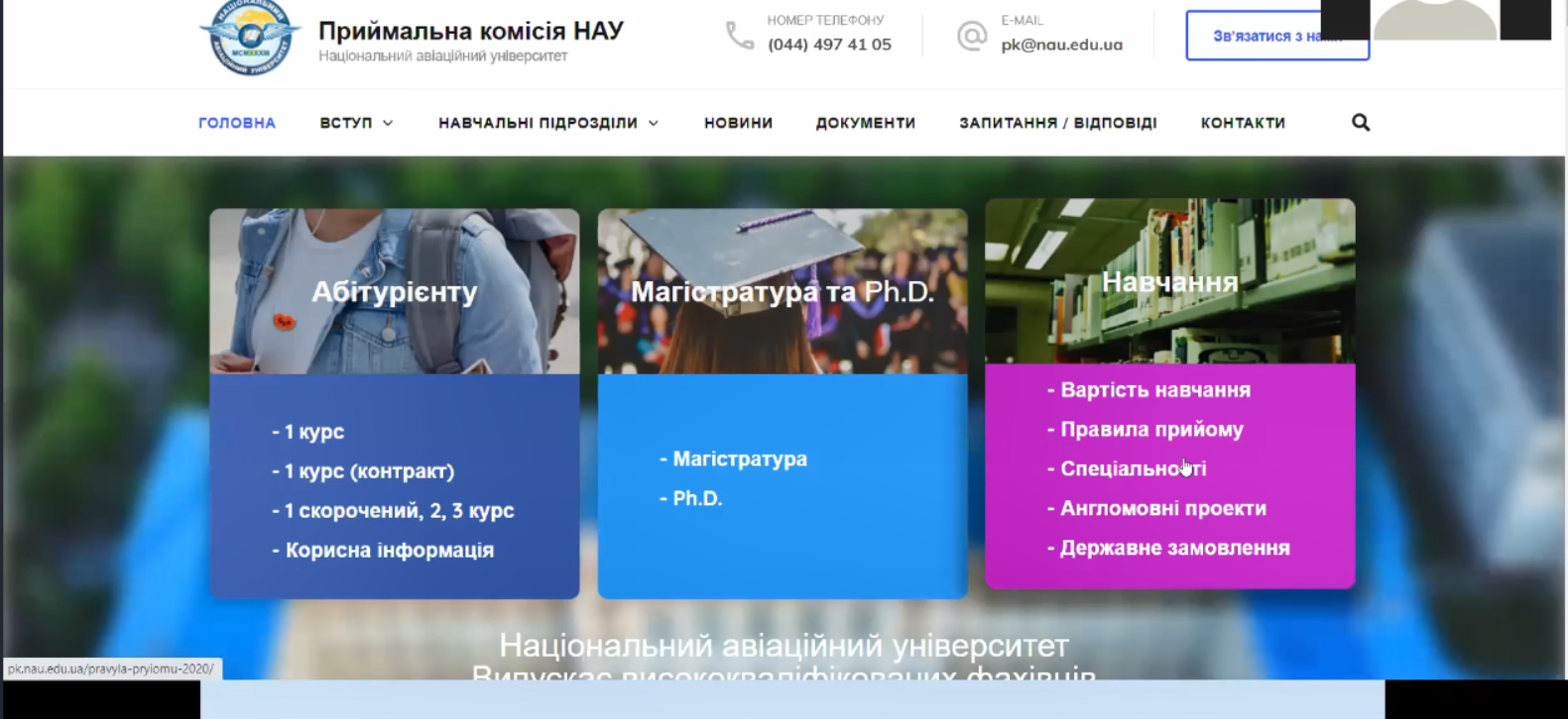 Учасниками онлайн конференції стали майбутні студенти НАУ, а також професорсько-викладацький склад, які зібралися заради конструктивного діалогу для проведення вдалої вступної кампанії-2020 та здійснення мрій вступників.