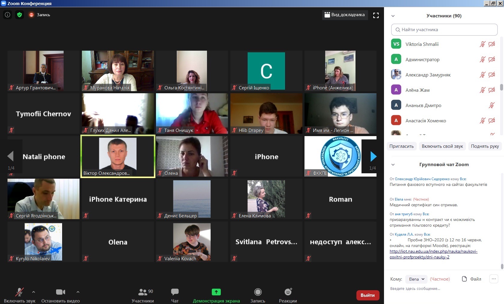З перших хвилин конференції розпочалася активна переписка учасників заходу в чаті, що свідчить про безліч питань, які хвилюють абітурієнтів.