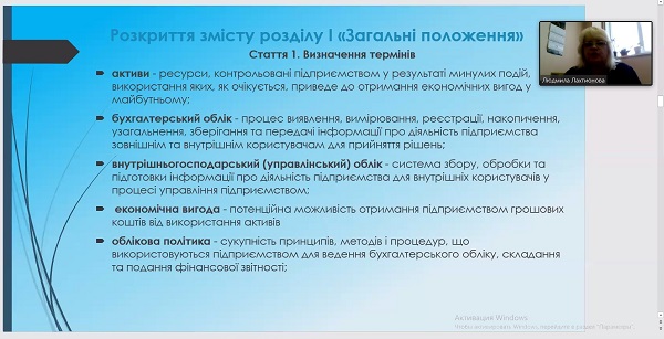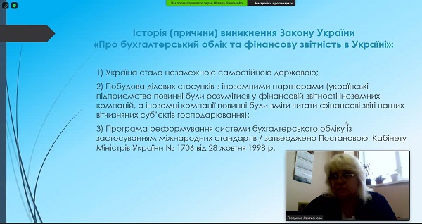 На лекції було розглянуто історію та причини розробки і введення в дію Закону України «Про бухгалтерський облік і фінансову звітність в Україні»; розкрито головне завдання трансформації національної системи бухгалтерського обліку; надано загальну характеристику даного закону; вказано його мету та призначення; на практичних прикладах висвітлено роботу принципів бухгалтерського обліку та фінансової звітності; зазначено форми організації бухгалтерського обліку на підприємствах; ознайомлено з обов’язками головного бухгалтера; наголошено на вимогах до посади головного бухгалтера підприємства, що становить суспільний інтерес. Роз’яснено застосування міжнародних стандартів для певної категорії вітчизняних підприємств.