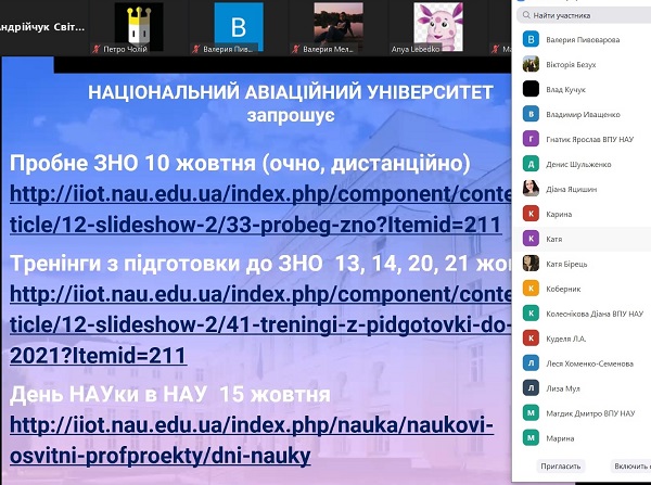 08 жовтня 2020 року відбувся профорієнтаційний захід «День професій в НАУ», який об’єднав науковців, учнів та учителів.