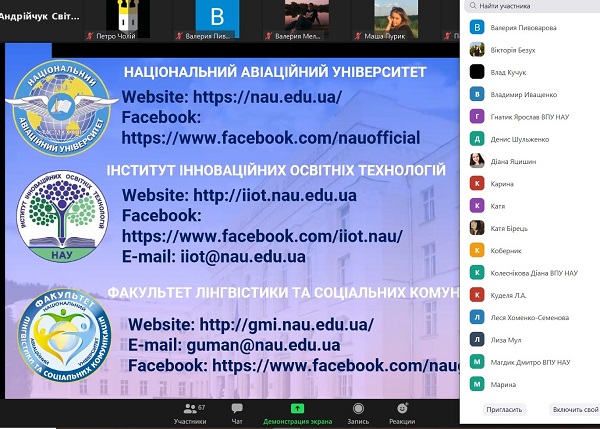 До участі у заході було залучено понад 250 учасників із м. Київ, м. Кам’янець-Подільський, смт. Рокитне, м. Козятин, з Київщини – м. Біла Церква, м. Канів, м. Боярка, м. Фастів, м. Бориспіль, м. Обухів, смт. Макарів, смт. Вишневе, та інші. Приємно, що активними слухачами були вихованці Авіакосмічного ліцею імені І. Сікорського НАУ, Вищого професійного училища НАУ, Комунального закладу «Макарівський багатопрофільний ліцей».