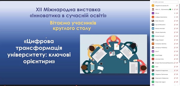 12 жовтня 2020 року в Національному авіаційному університеті в межах програми XIІ Міжнародної виставки «Інноватика в сучасній освіті» відбувся круглий стіл «Цифрова трансформація університету: ключові орієнтири» у форматі онлайн на платформі ZOOM.