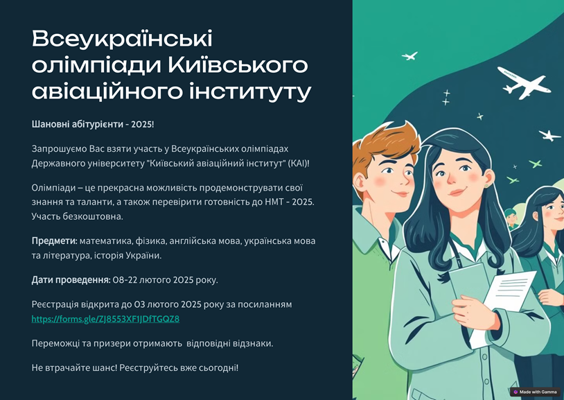 Запрошуємо вас до участі у Всеукраїнських олімпіадах Київського авіаційного інституту! Цьогоріч олімпіади відбуватимуться з таких предметів: